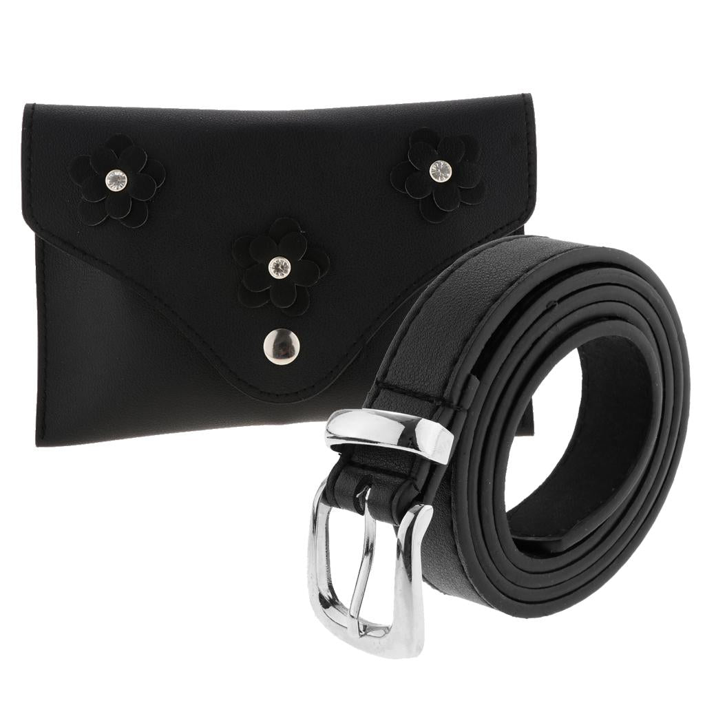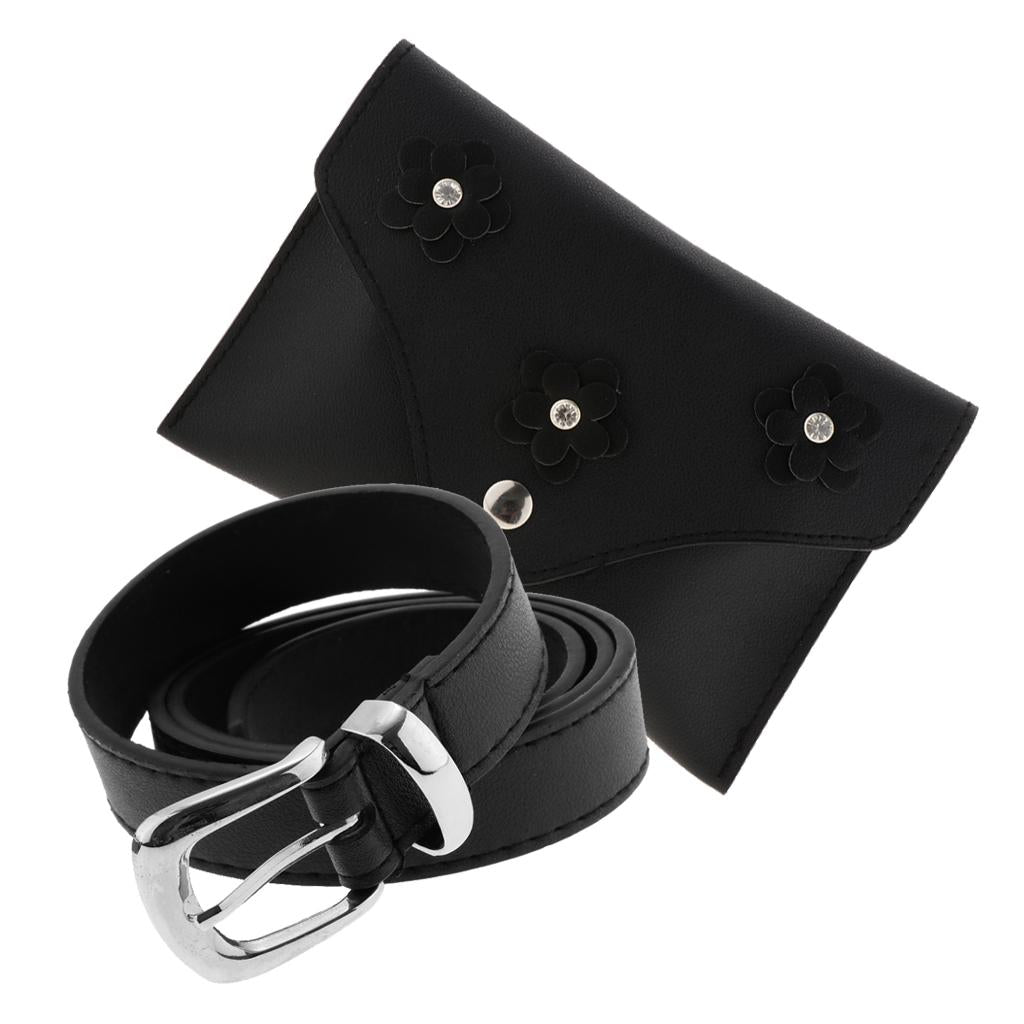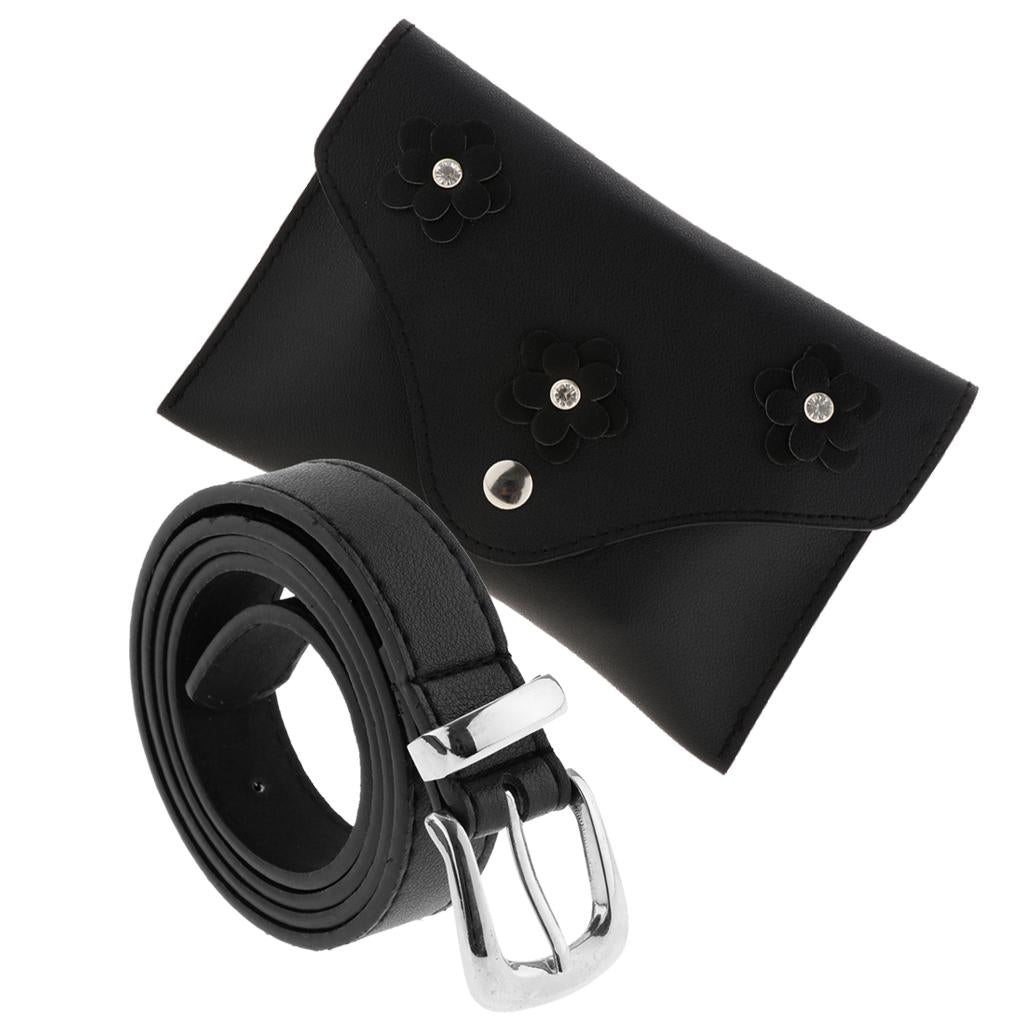 Black floral women's leather waist fanny pack