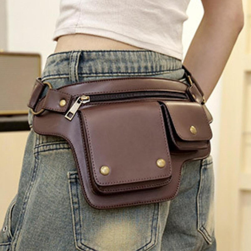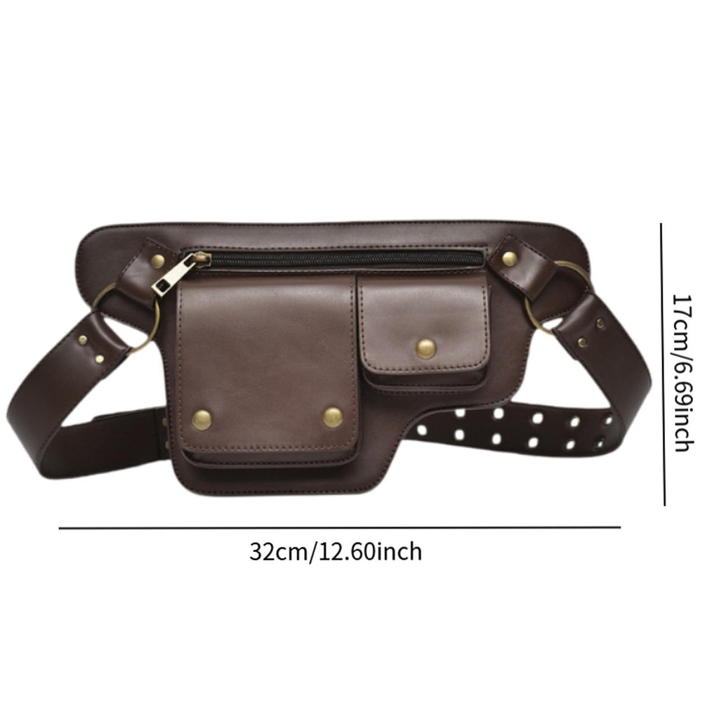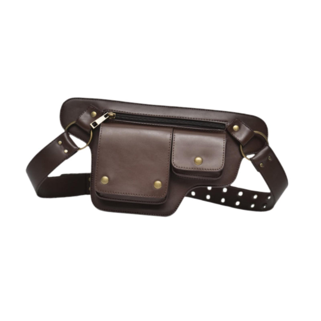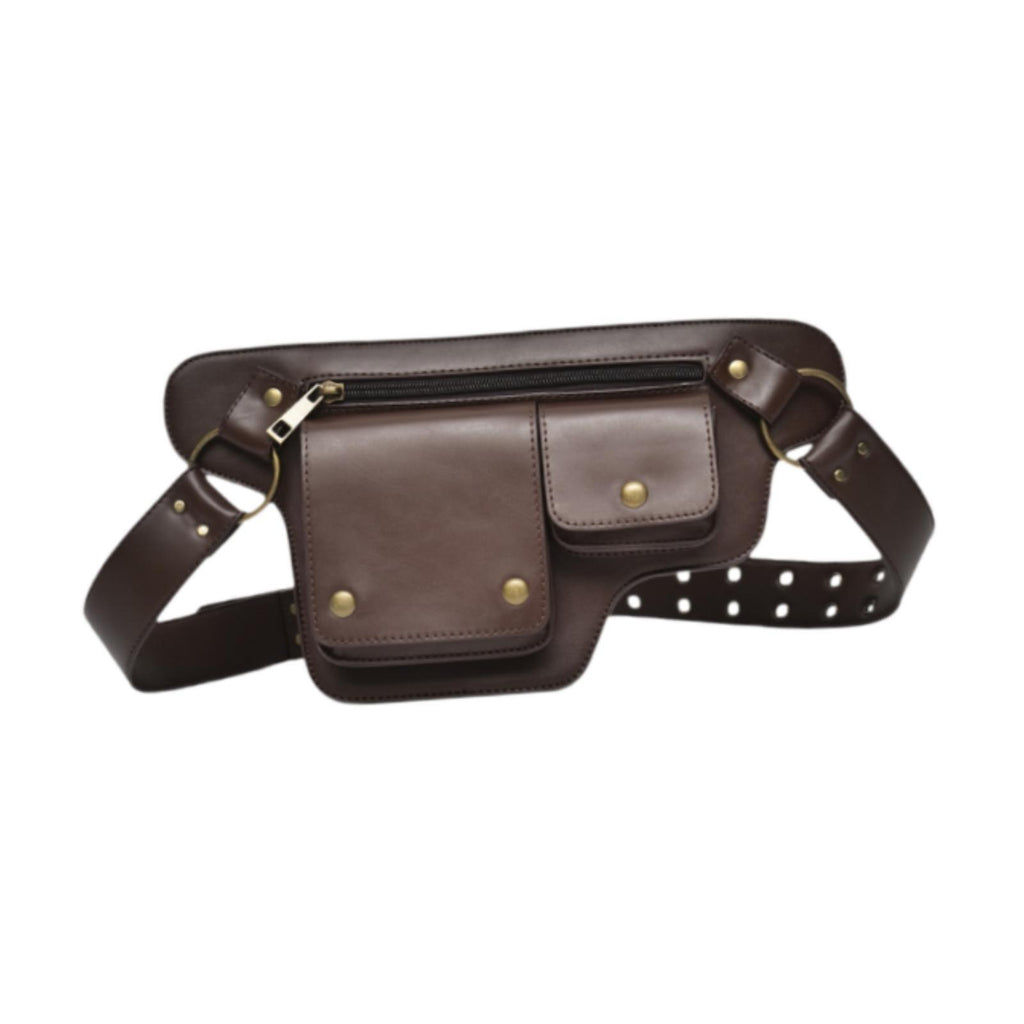 Maxbell Waist Pack Punk Style Hip Bag Wallet Waist Bag for Travel Fishing Hiking Brown