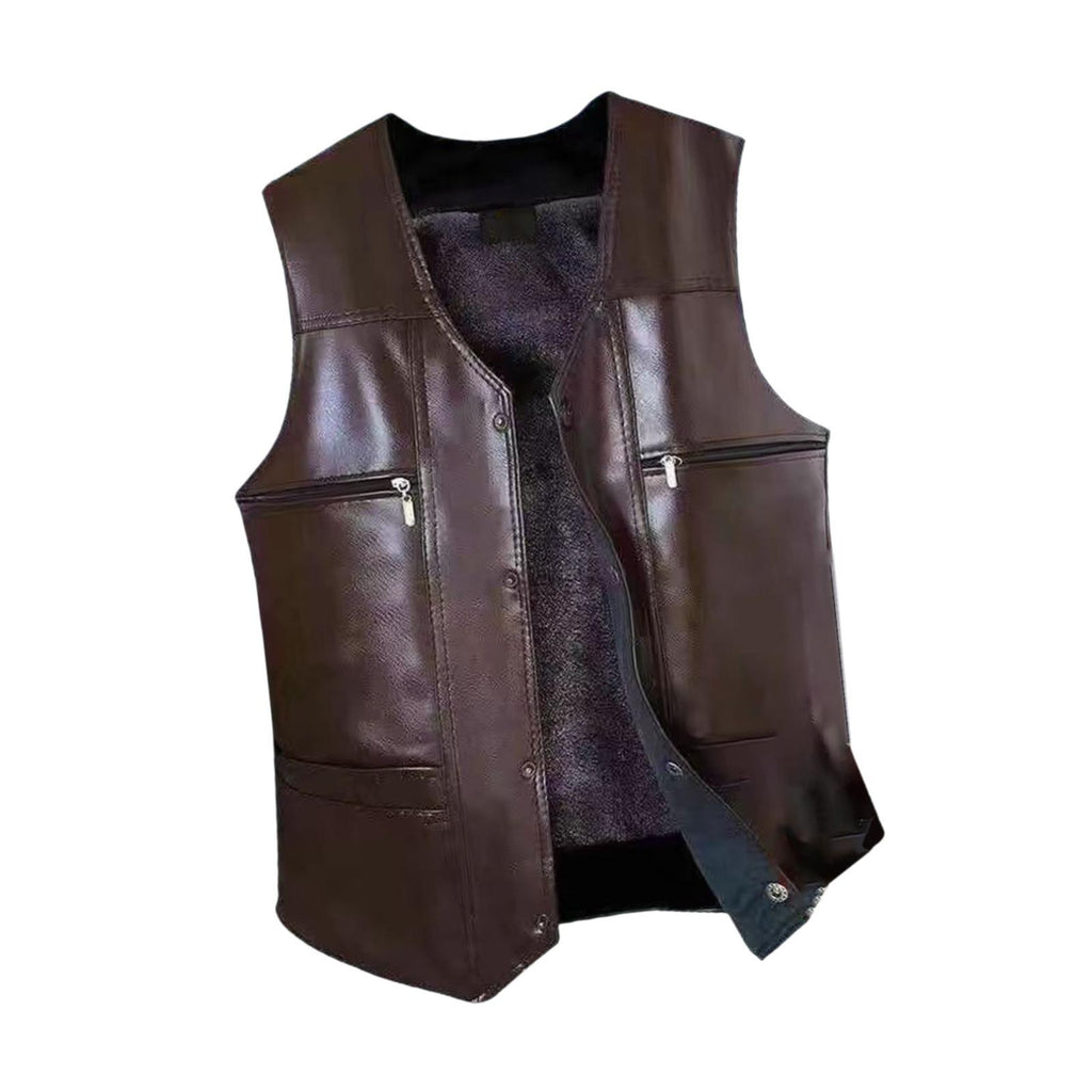 Maxbell Waistcoat Lightweight Utility Mens PU Leather Vest for Travel Winter Hunting XL Brown