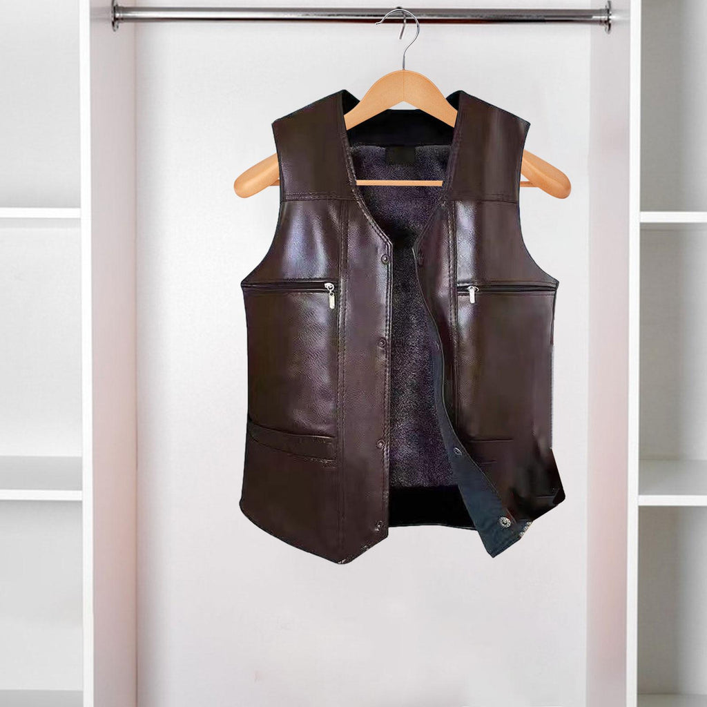 【Premium Material】: Crafted from quality PU leather, this Motorcycle Vest offers a stylish appearance with durability and resistance to wear, making it a practical addition to your winter wardrobe