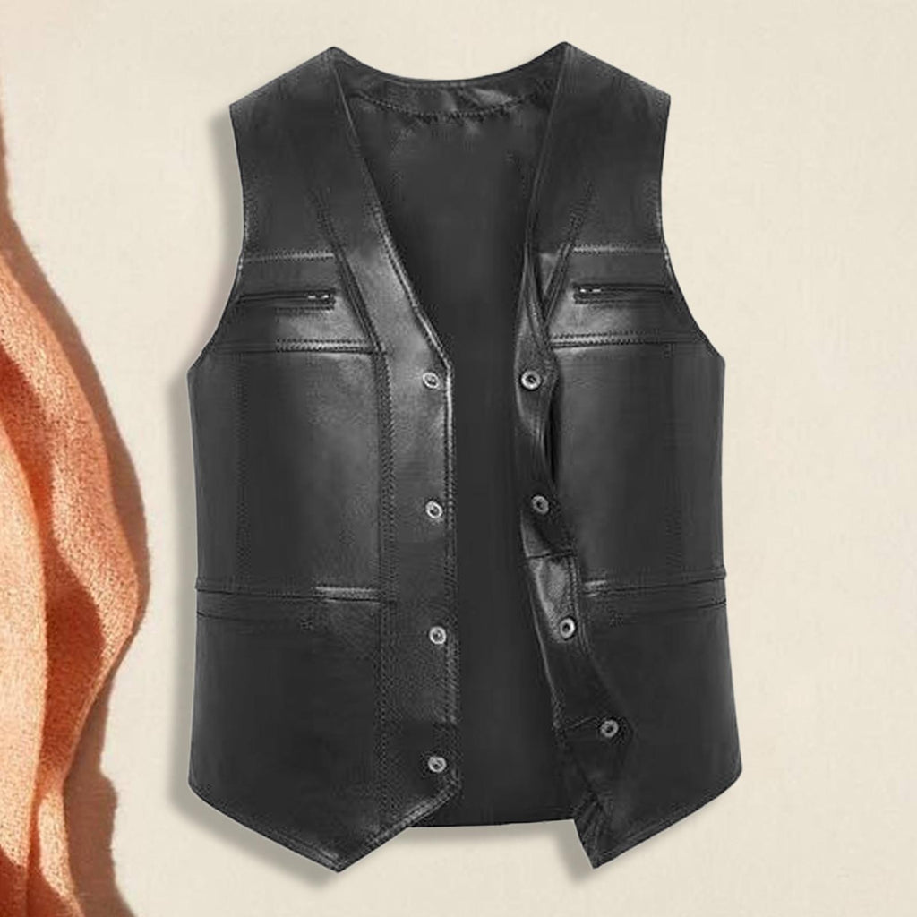 【Premium Material】: Crafted from quality PU leather, this Motorcycle Vest offers a stylish appearance with durability and resistance to wear, making it a practical addition to your wardrobe