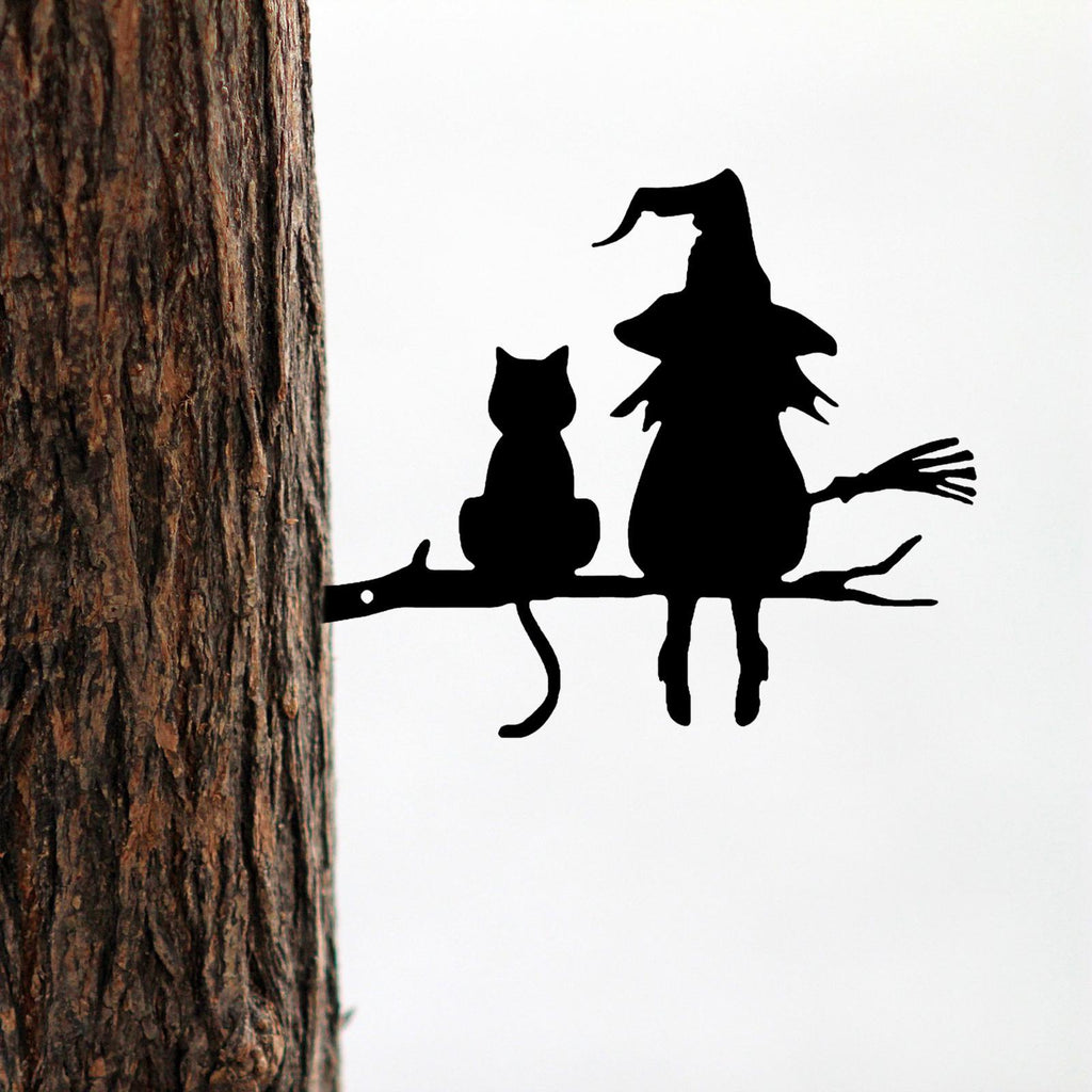 - 【Size Dimensions】: This cute witch and cat iron silhouette measures 20x25cm, making it suitable for your garden tree, especially those who like silhouette ornament.