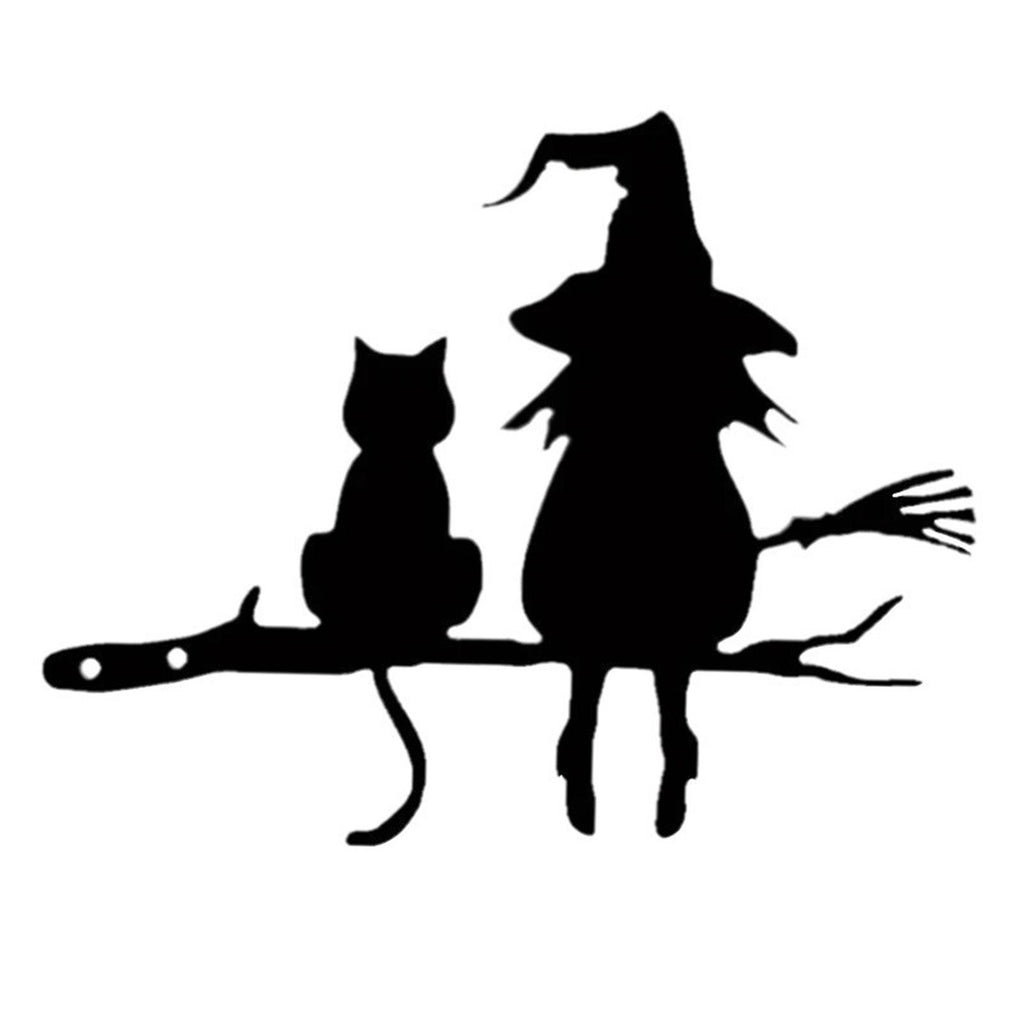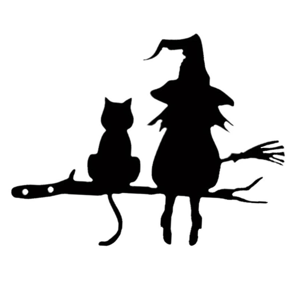 Maxbell Wall Art Metal Silhouette Witch and Cat Statue for Fence Home Indoor Outdoor