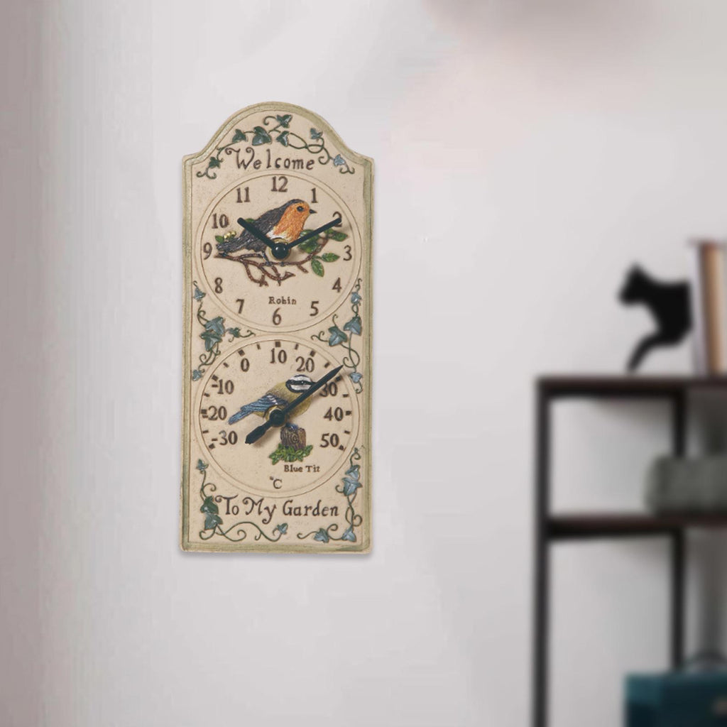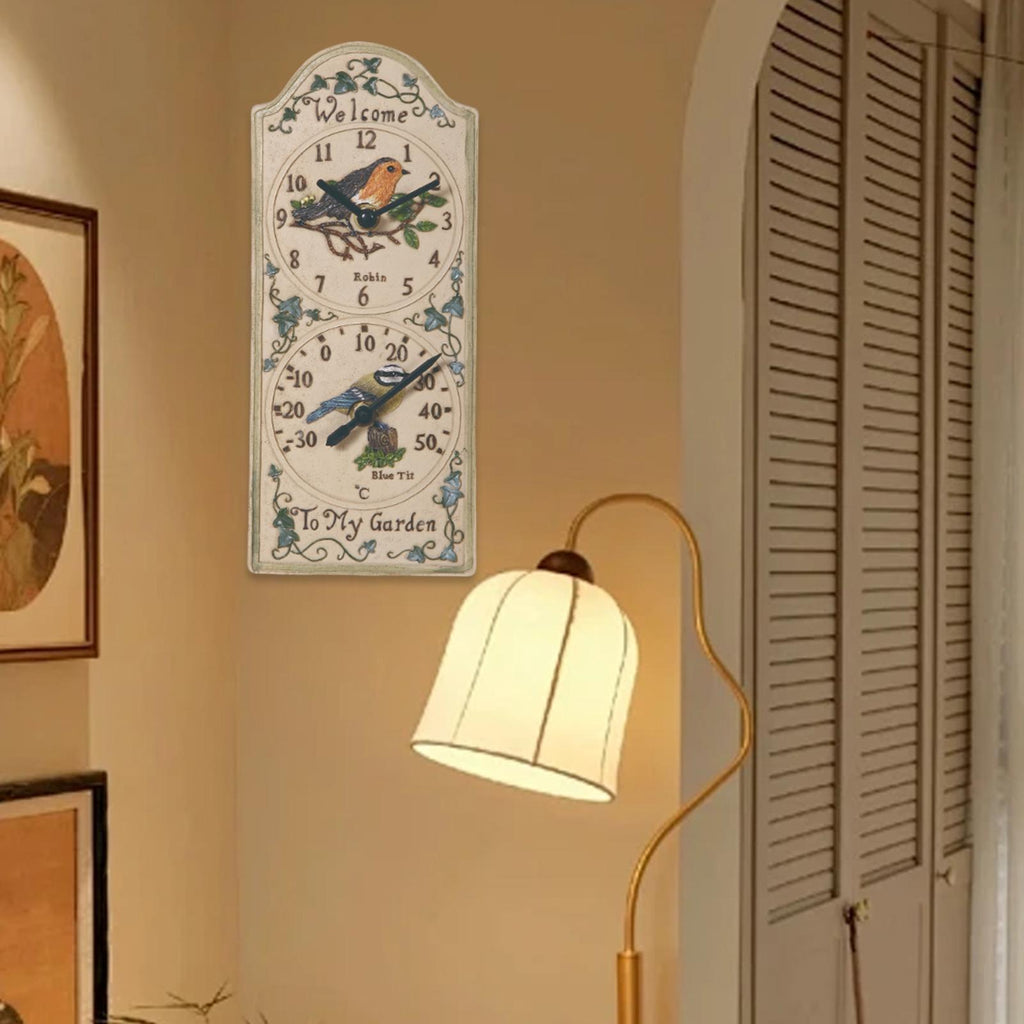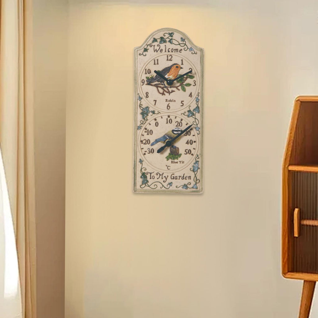 Maxbell Wall Hanging Clock with Thermometer Indoor and Outdoor Clock for Garden Cafe