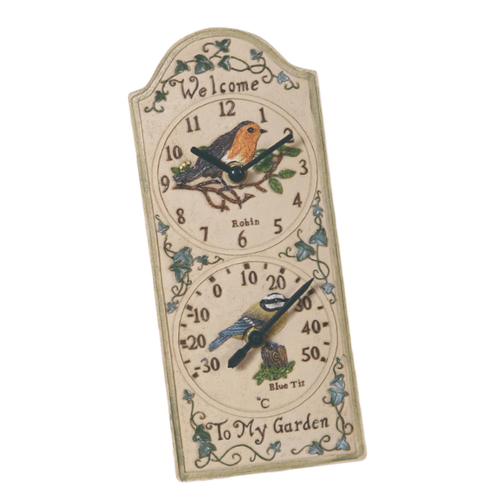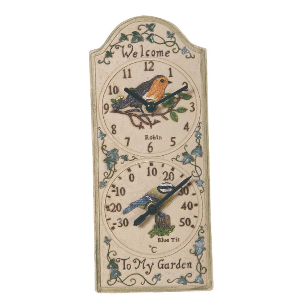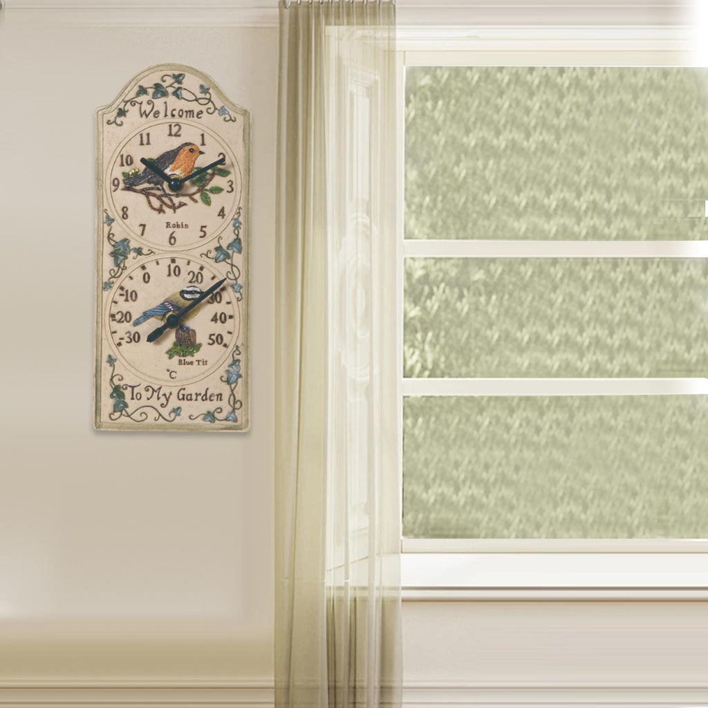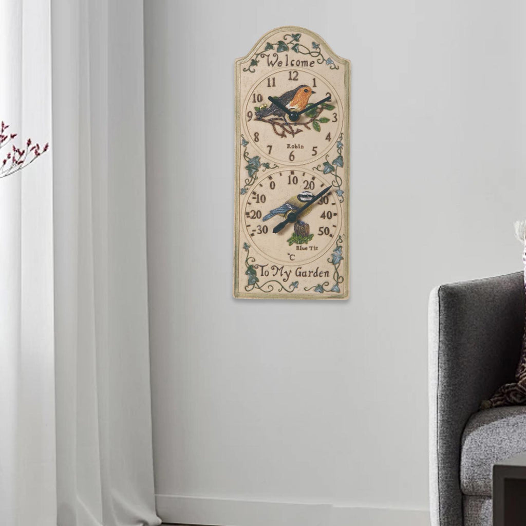Maxbell Wall Hanging Clock with Thermometer Indoor and Outdoor Clock for Garden Cafe