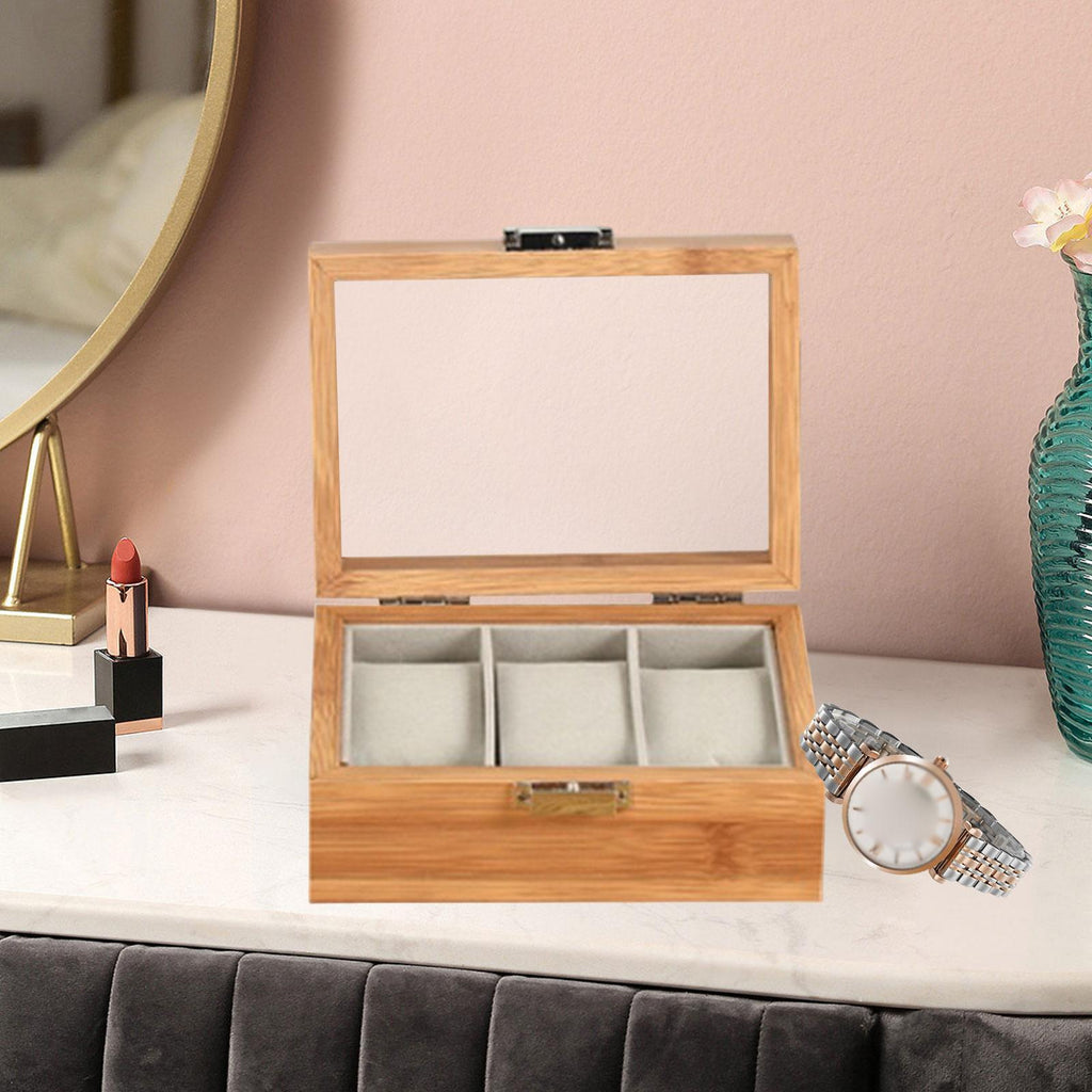 Secure with Transparent Lid: Watch display case featuring a lockable transparent glass lid, this watch storage box keeps your items safe while protecting them from dust. This Clear Lid allows you to easily view your collection at a glance