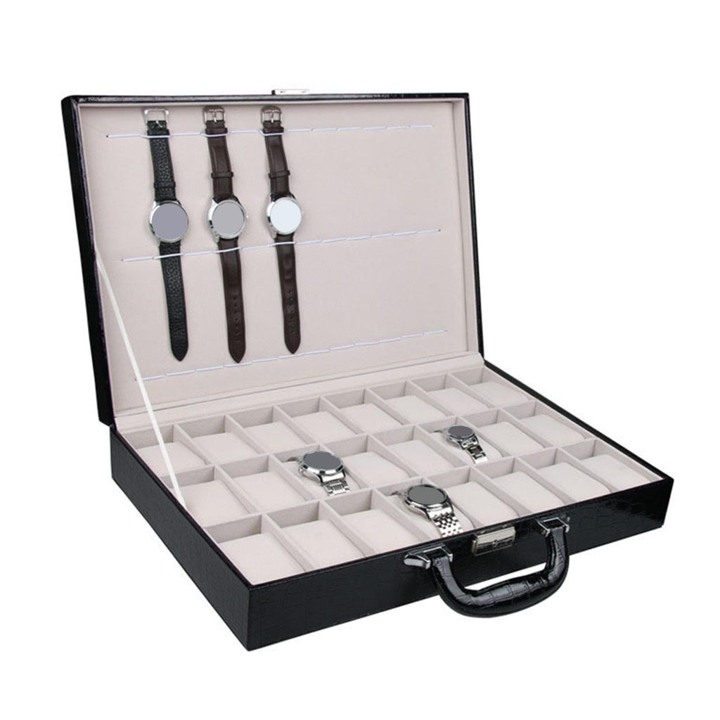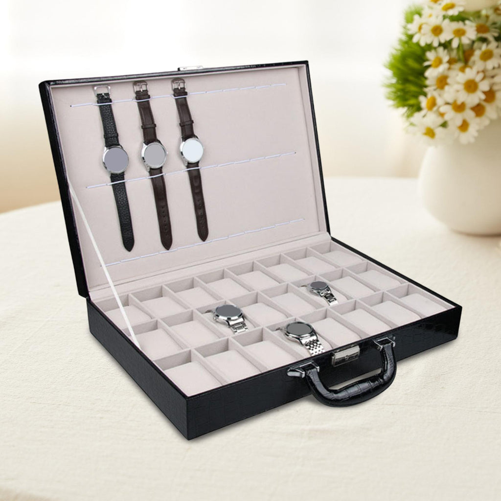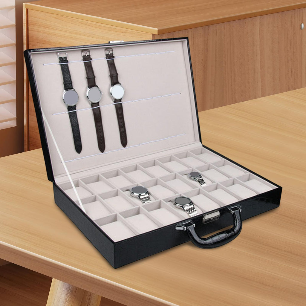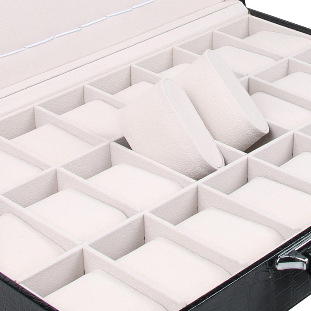 【Watch Display】: Designed to showcase up to 36 watches (24 slots, hanging 12 on top) , this Watch Case provides a good place for displaying your timepieces. It highlights the details of each watch's dial and strap, ensuring they look their best while being protected from scratches
