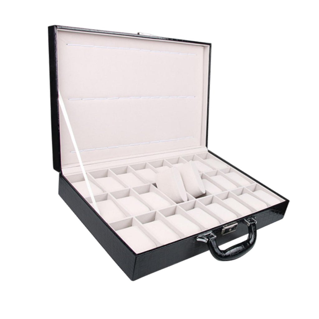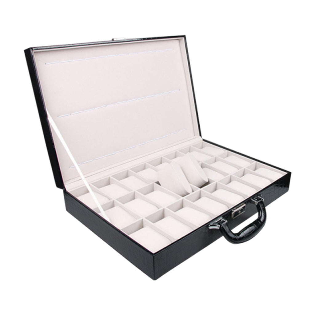 【Convenient for Travel】: With dimensions of 16.93inchx11.61inchx3.54inch, this portable Watch Display Case is ideal for travel or outdoor use. It allows you to carry and access your watches easily during trips, adding convenience to your travels