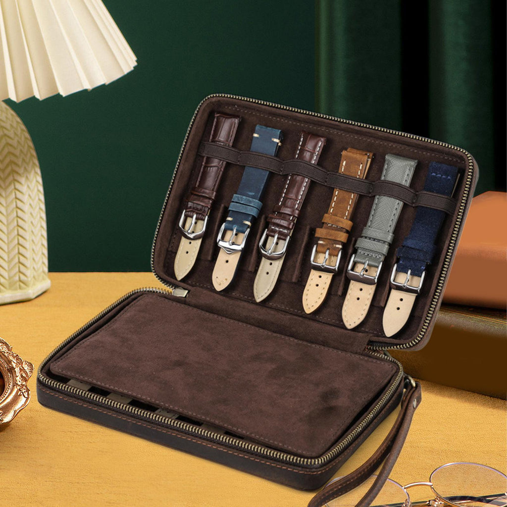 【Handcrafted】: This portable wristwatch strap box is handcrafted with attention to detail, offering not just functionality but also an aesthetic appeal that complements your collection of watch straps.