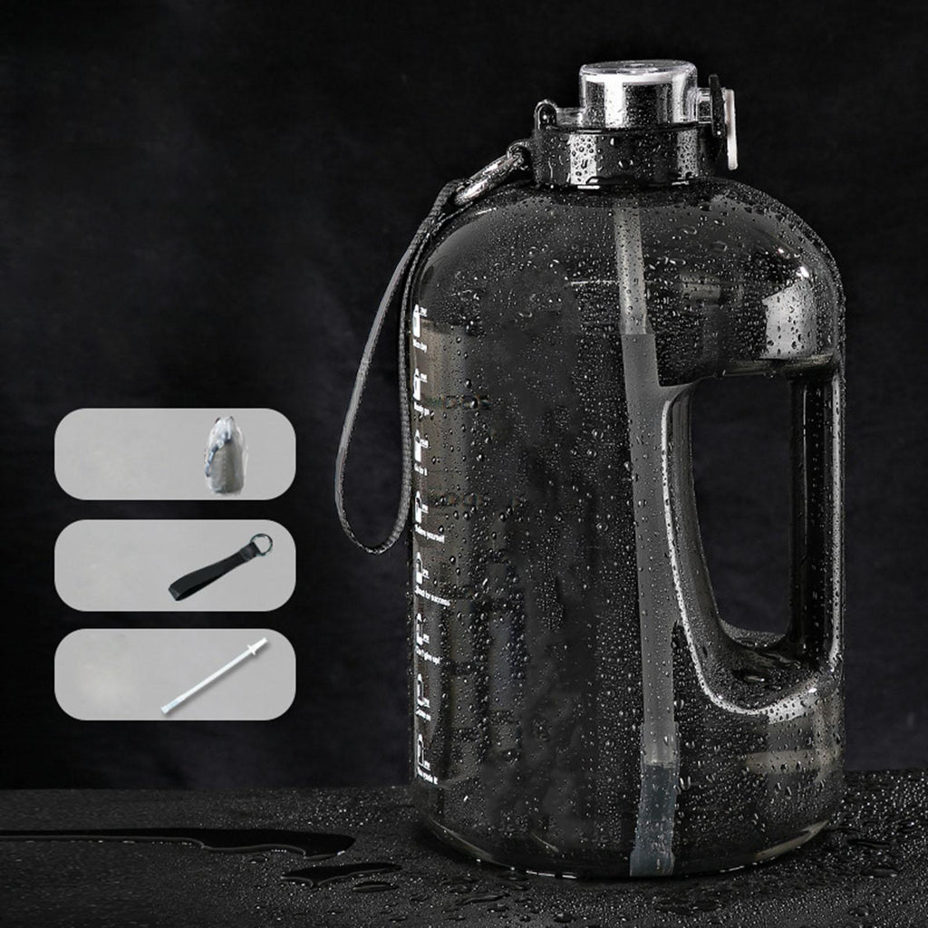 Maxbell Maxbell Water Bottle with Straw Time Marker Sports Water Jug Workout Yoga 2.5L Black