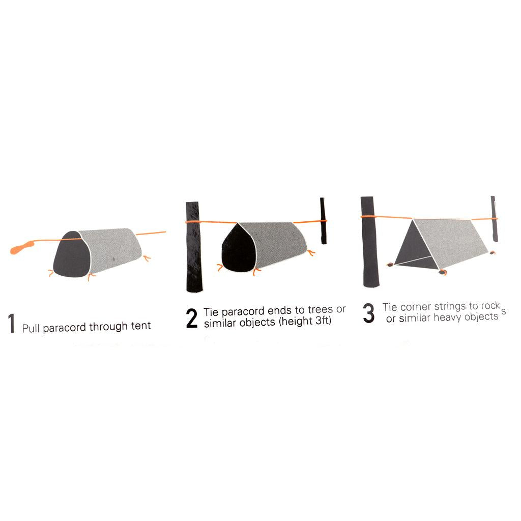 Used as a backpack cover, rain poncho, emergency signal, shade cover, dust shield, sleeping bag, wind blocker, water collector, etc.