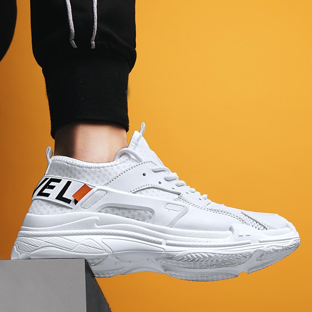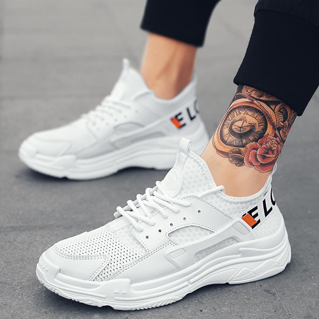 Men’s white mesh sneakers, breathable and flexible, great for daily casual wear and sports wear