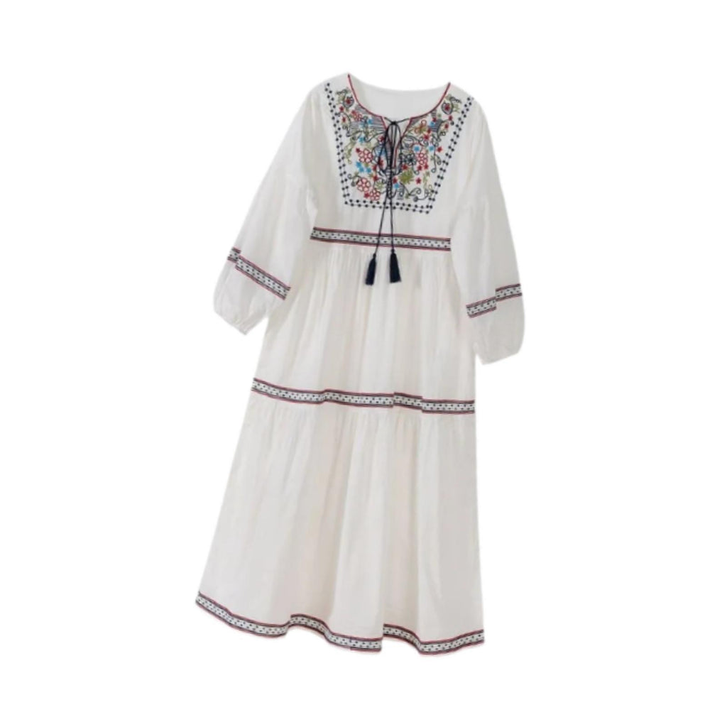 【Quality material】: Crafted from quality cotton and linen, this women embroidered dress offers a soft, comfortable, breathable, and sturdy experience