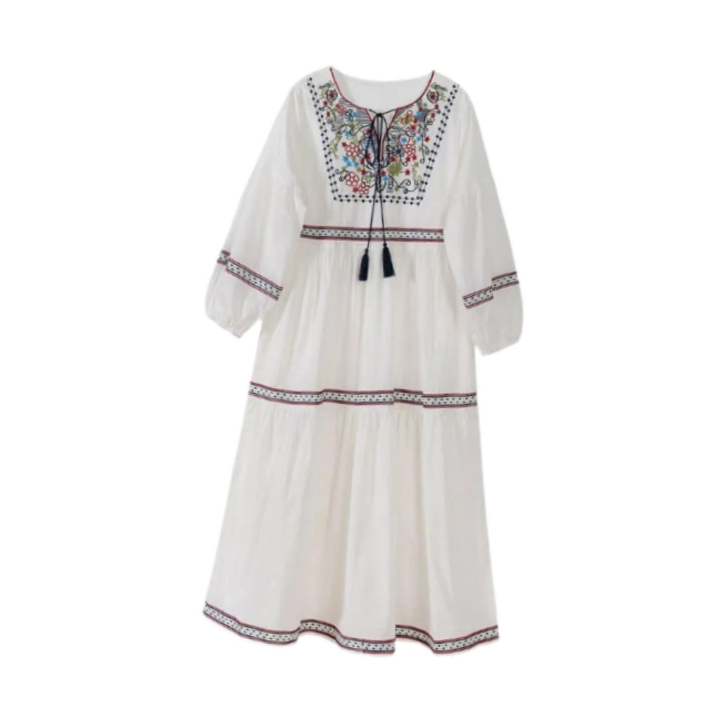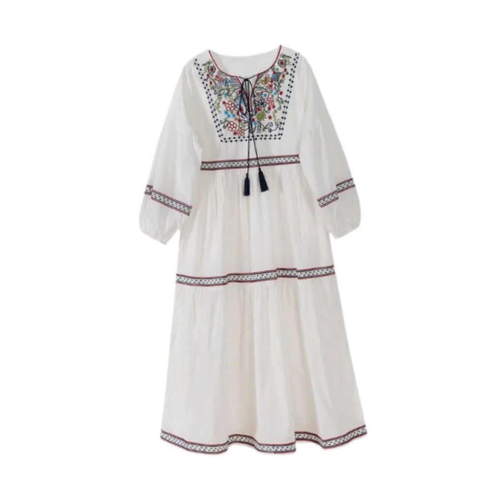 Maxbell Women Embroidered Dress Streetwear Elegant Cloth for Travel Vacation Holiday L