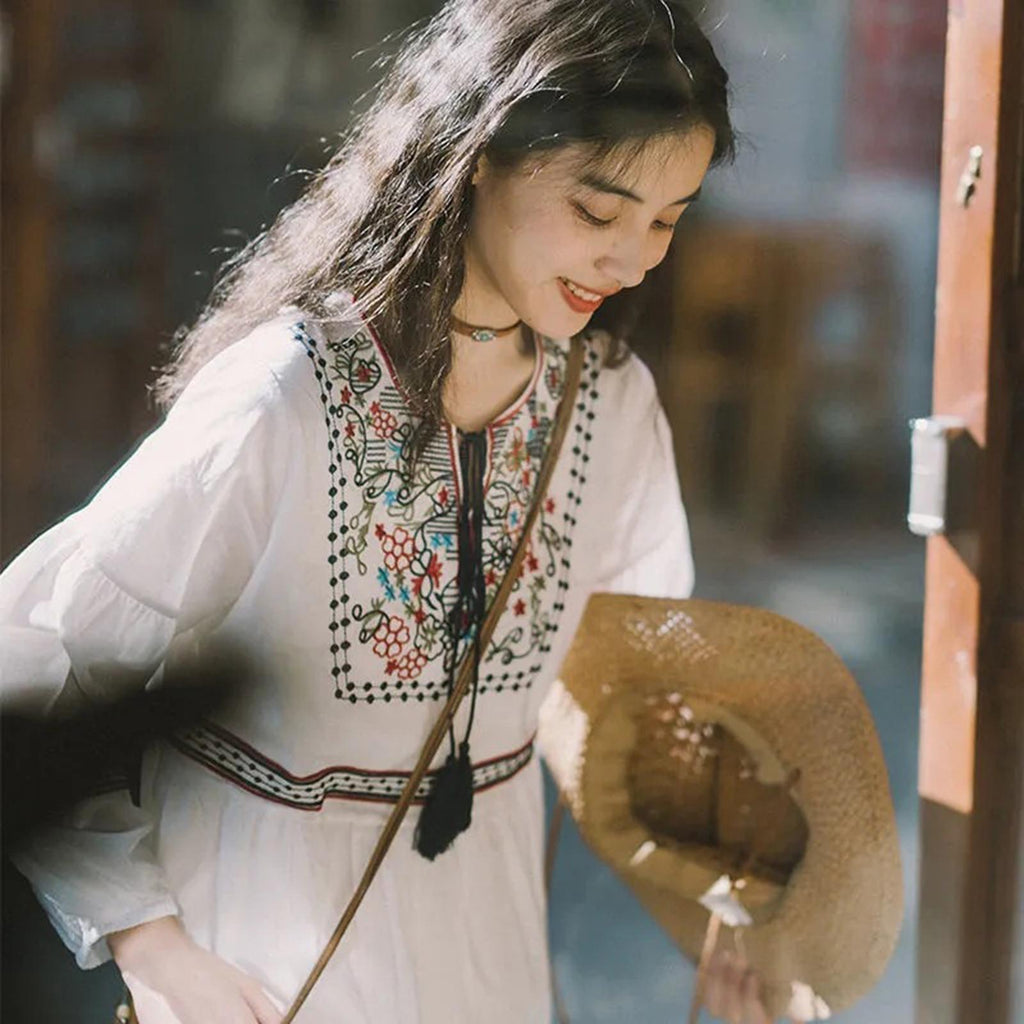 【Quality material】: Crafted from quality cotton and linen, this women embroidered dress offers a soft, comfortable, breathable, and sturdy experience