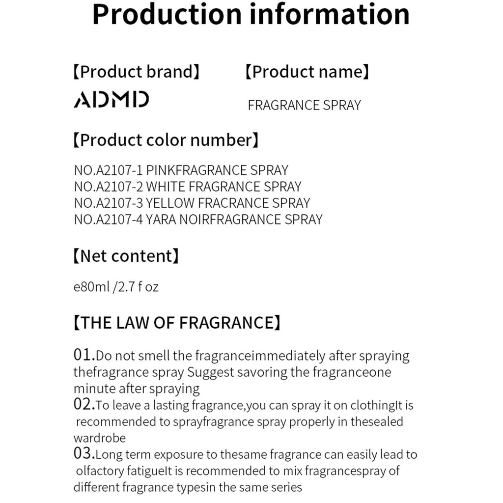 【Portable】: 80ml Women Fragrance Body Mist size is 3.9 cm x 3.9 cm x 13.1 cm/1.54 inch x 1.54 inch x 5.16 inch is portable and lightweight, easy to carry