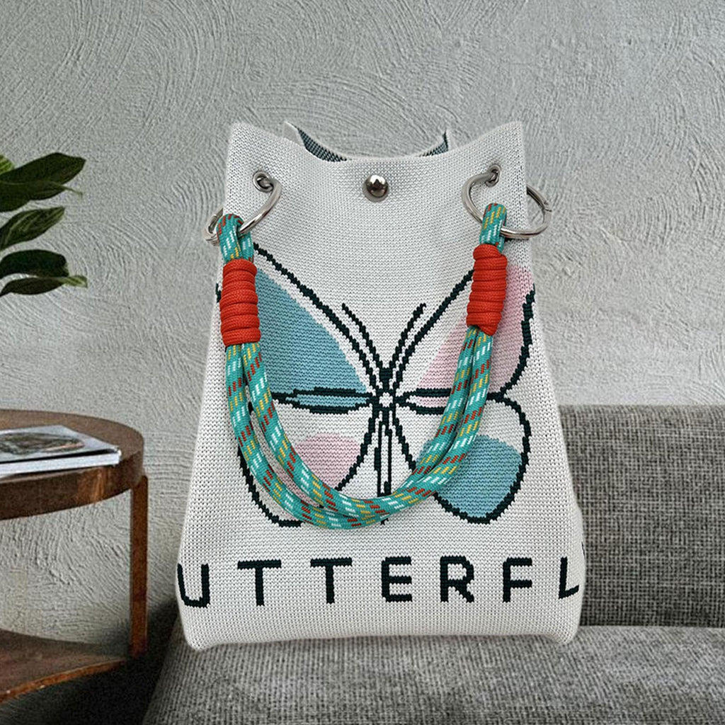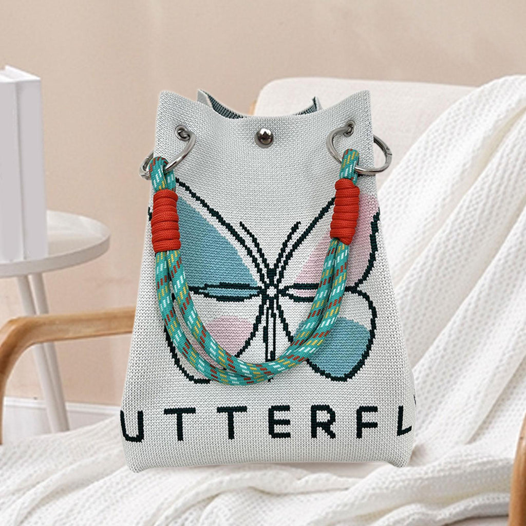 Maxbell Women Knit Bucket Bag Chic Ladies Shoulder Purse for Shopping Travel Holiday Beige