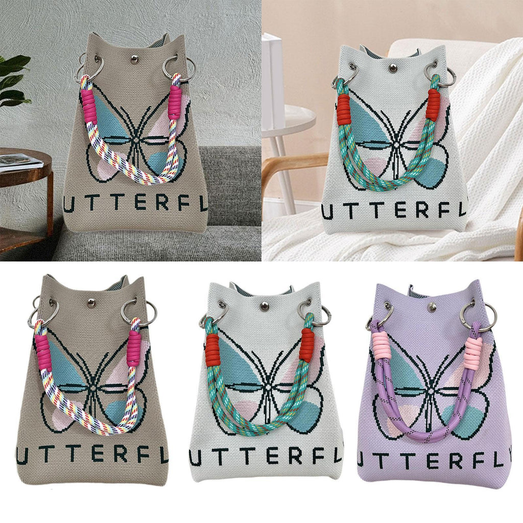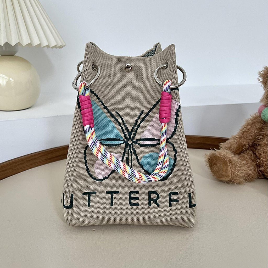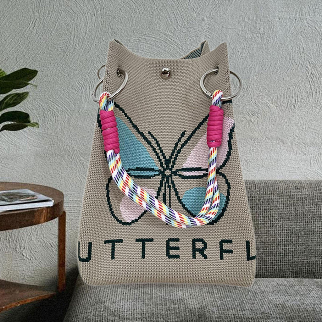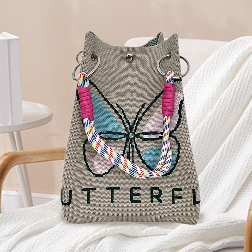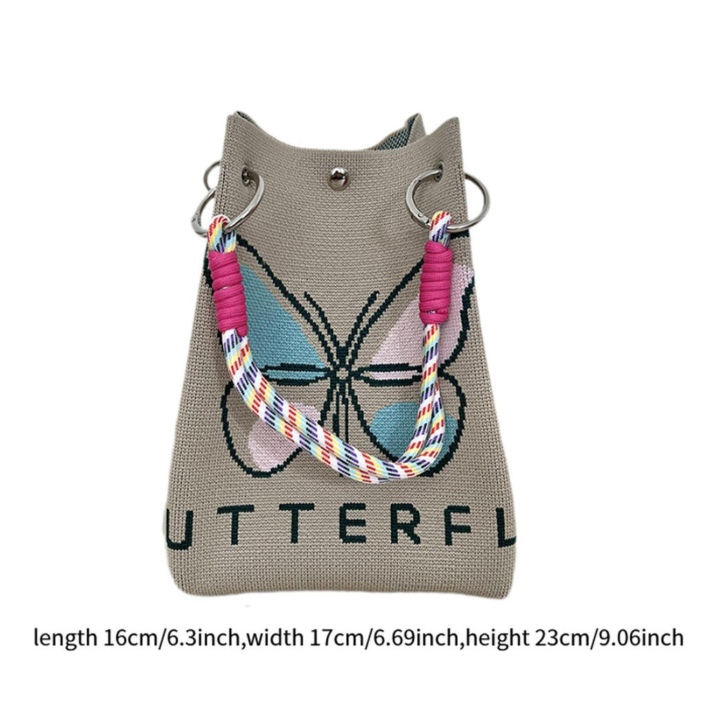 Maxbell Women Knit Bucket Bag Chic Ladies Shoulder Purse for Shopping Travel Holiday Khaki
