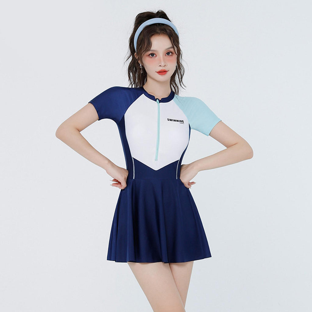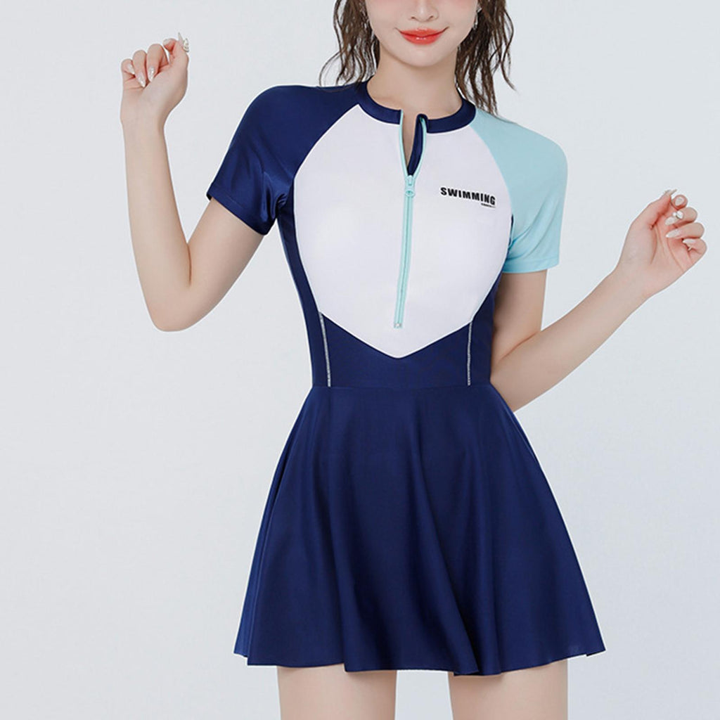 Maxbell Women Swimsuit Quick Dry Zip up Swim Dress for Traveling Water Sports Summer XL