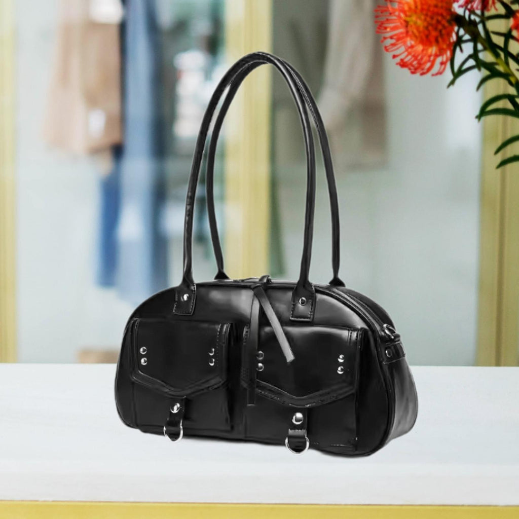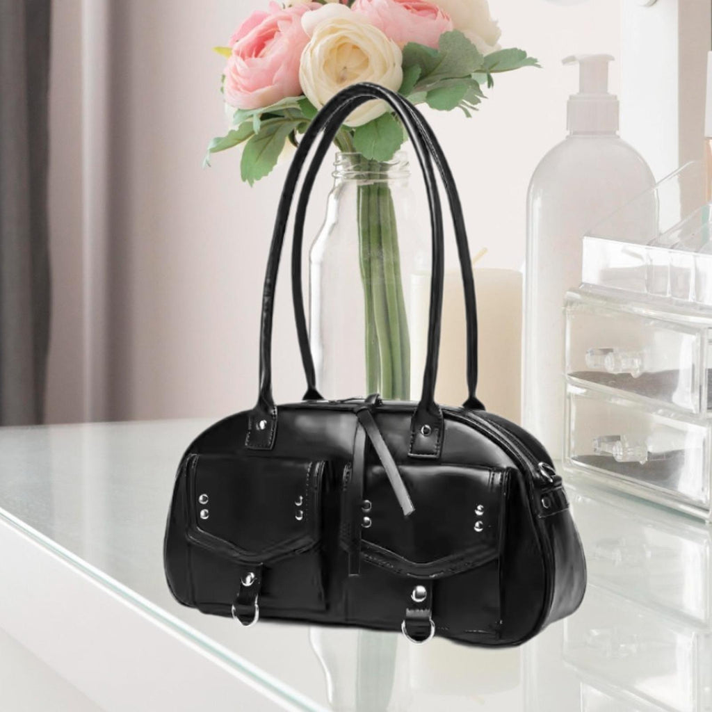 Maxbell Women Underarm Bag Portable Black Clutch Bag for Shopping Birthday Traveling