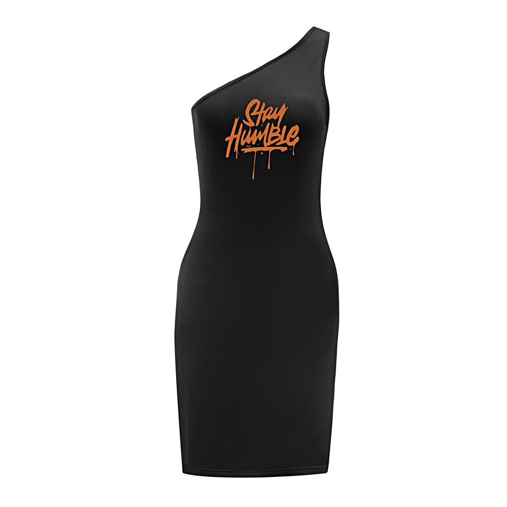 【Features】: Women's mini dress features sleeveless, 1 shoulder, slope neck, high waist, and above knee length design, blend of elegance and casual .