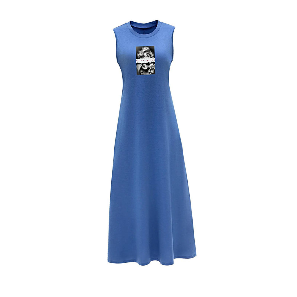 【Features】: Women's dress features sleeveless, round neck, high waist, A line, and long length design, blend of elegance and casual .