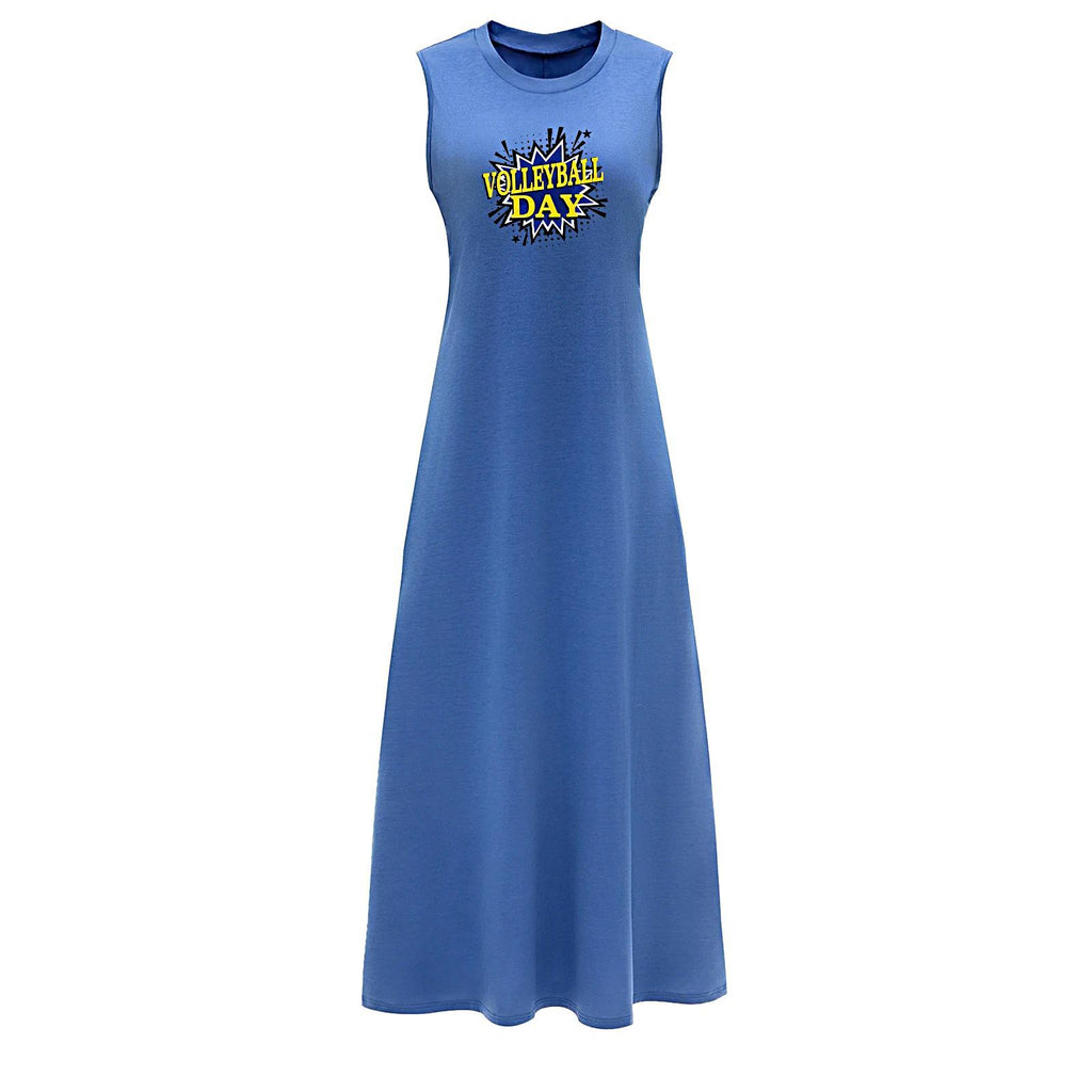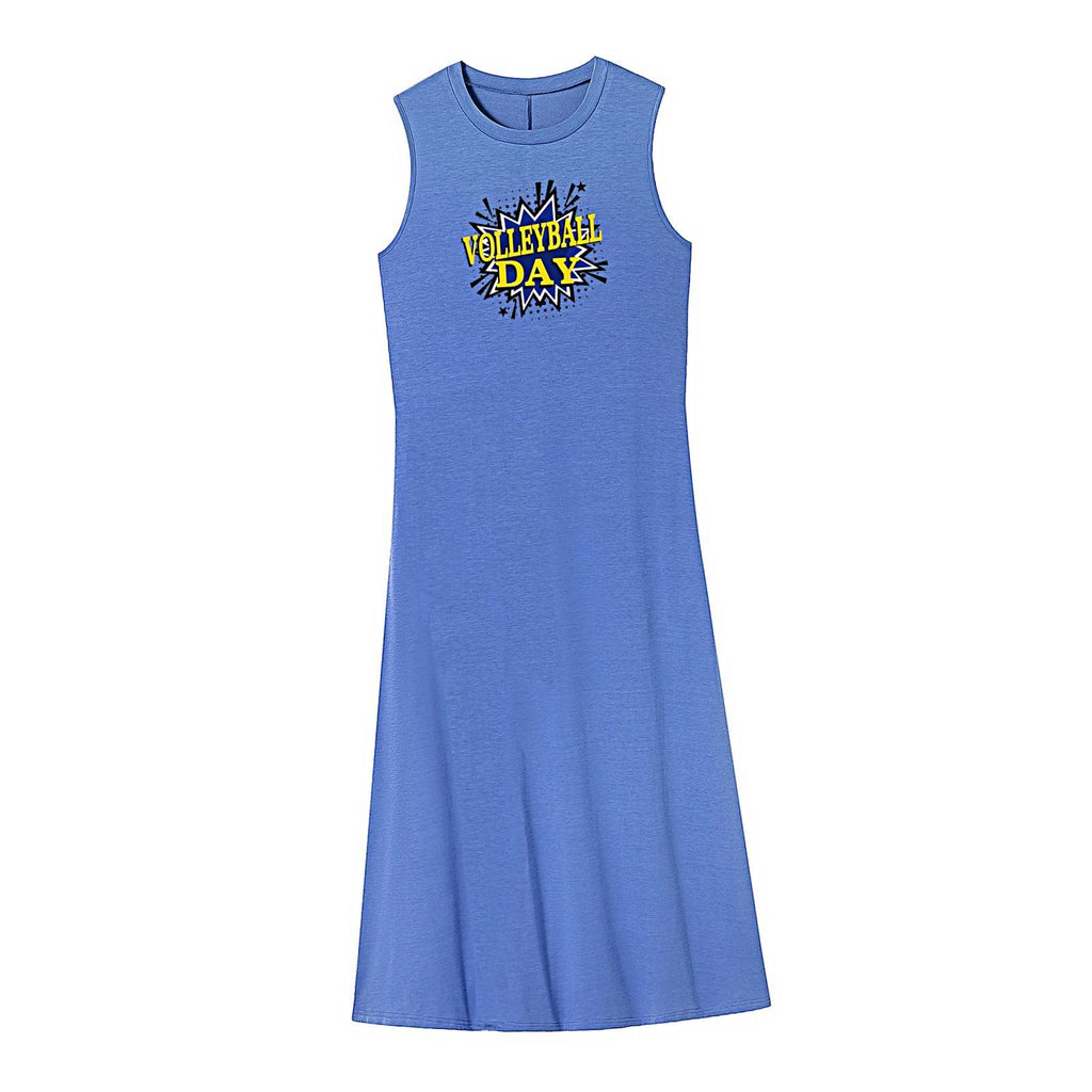 【Features】: Women's dress features sleeveless, round neck, high waist, A line, and long length design, blend of elegance and casual .
