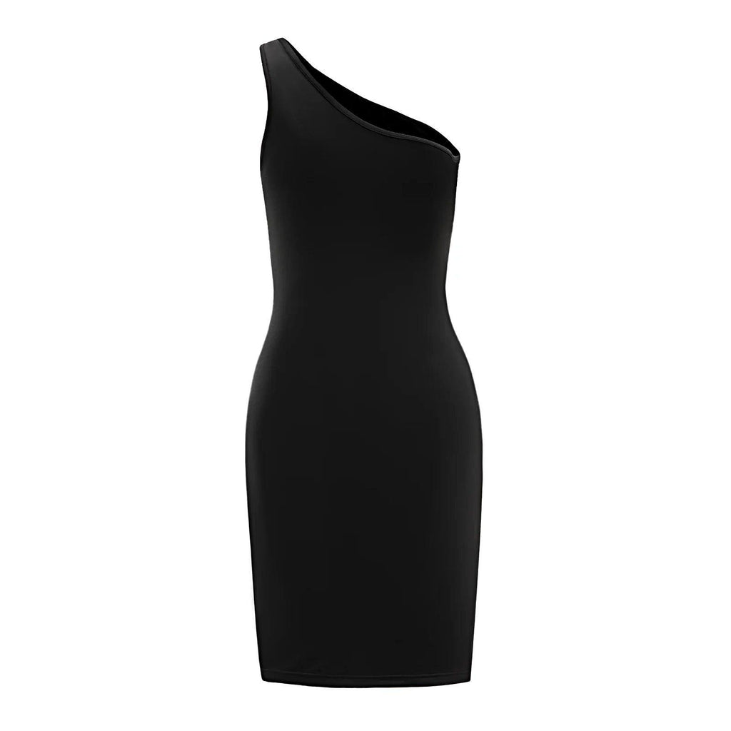 【Features】: Women's mini dress features sleeveless, 1 shoulder, slope neck, high waist, and above knee length design, blend of elegance and casual .