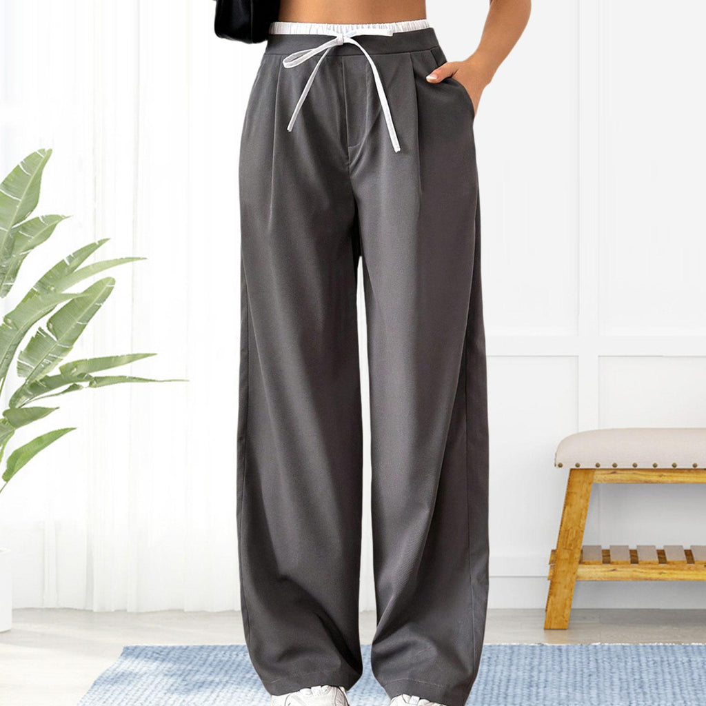Maxbell Womens Wide Leg Sweatpants Stretch Elastic High Waist for Work Travel Office XS Gray