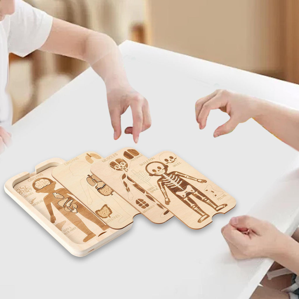 【Multi layer design】: Featuring a 4 layer structure, this wooden body puzzle can be easily assembled and disassembled, aiding children in developing fine motor skills and enhancing their dexterity