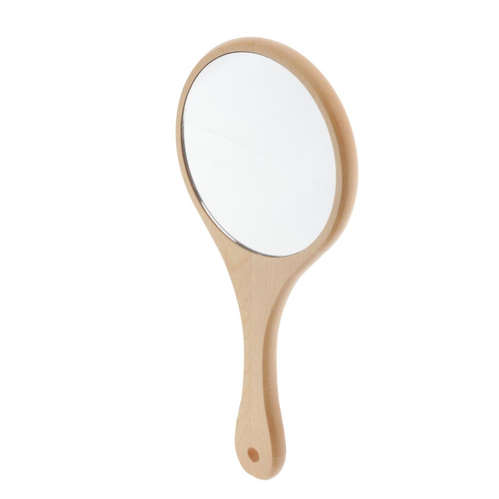 Max Wooden Makeup Cosmetic Compact Handheld Mirror Travel Small Vanity Mirror Round M