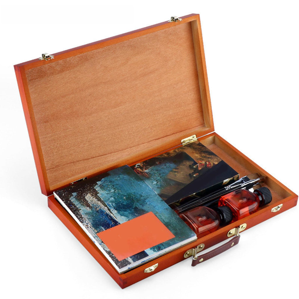 Maxbell Wooden Painting Box Travel Beginners Portable Retro Design Drawing Tool Case