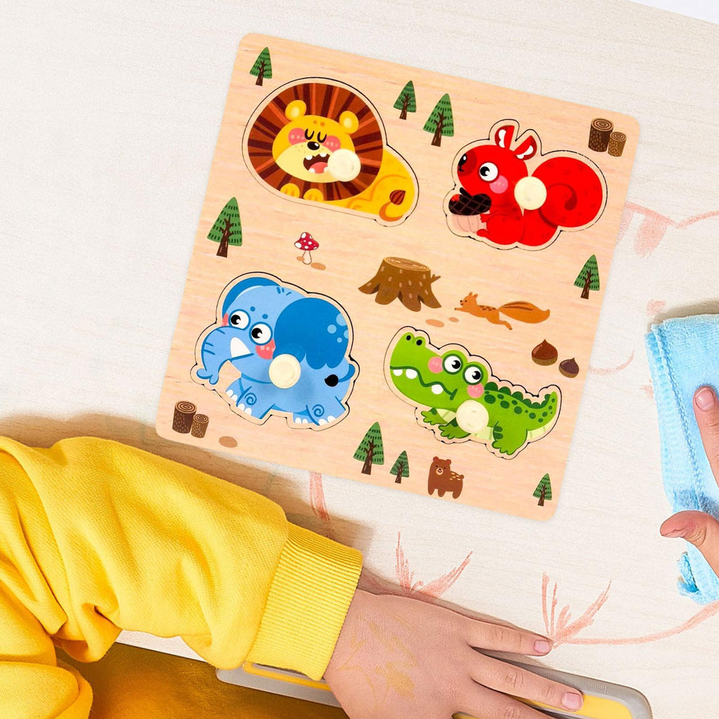 Wooden Peg Puzzle Preschool Shape Matching Board for Game Outdoor Activities animal