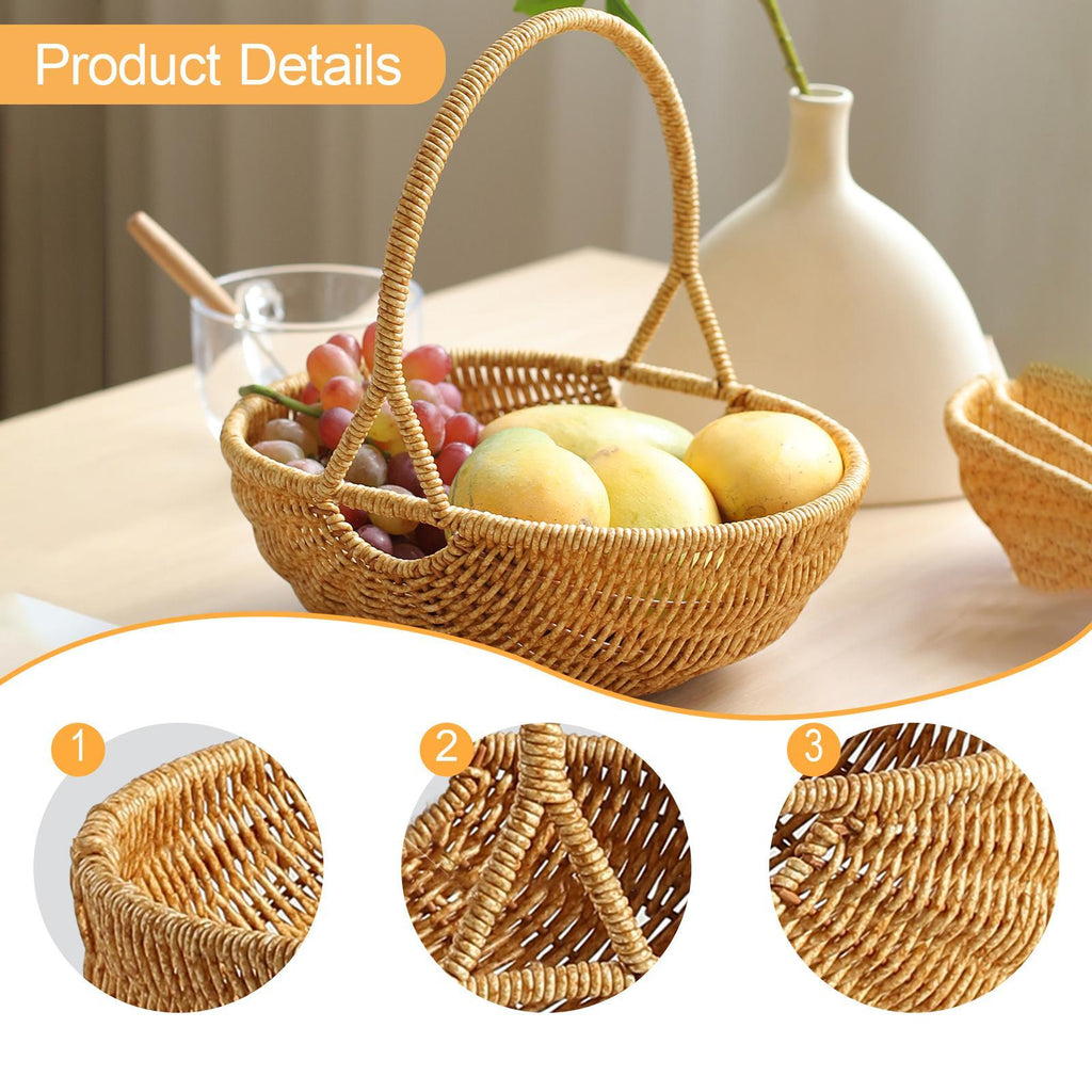 【Hand Woven Design】: The hand woven design gives the Fruit Basket an authentic and rustic look that adds charm to any setting