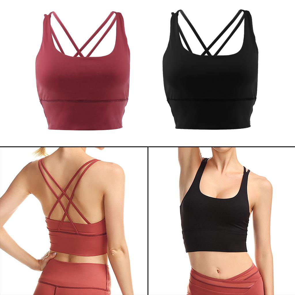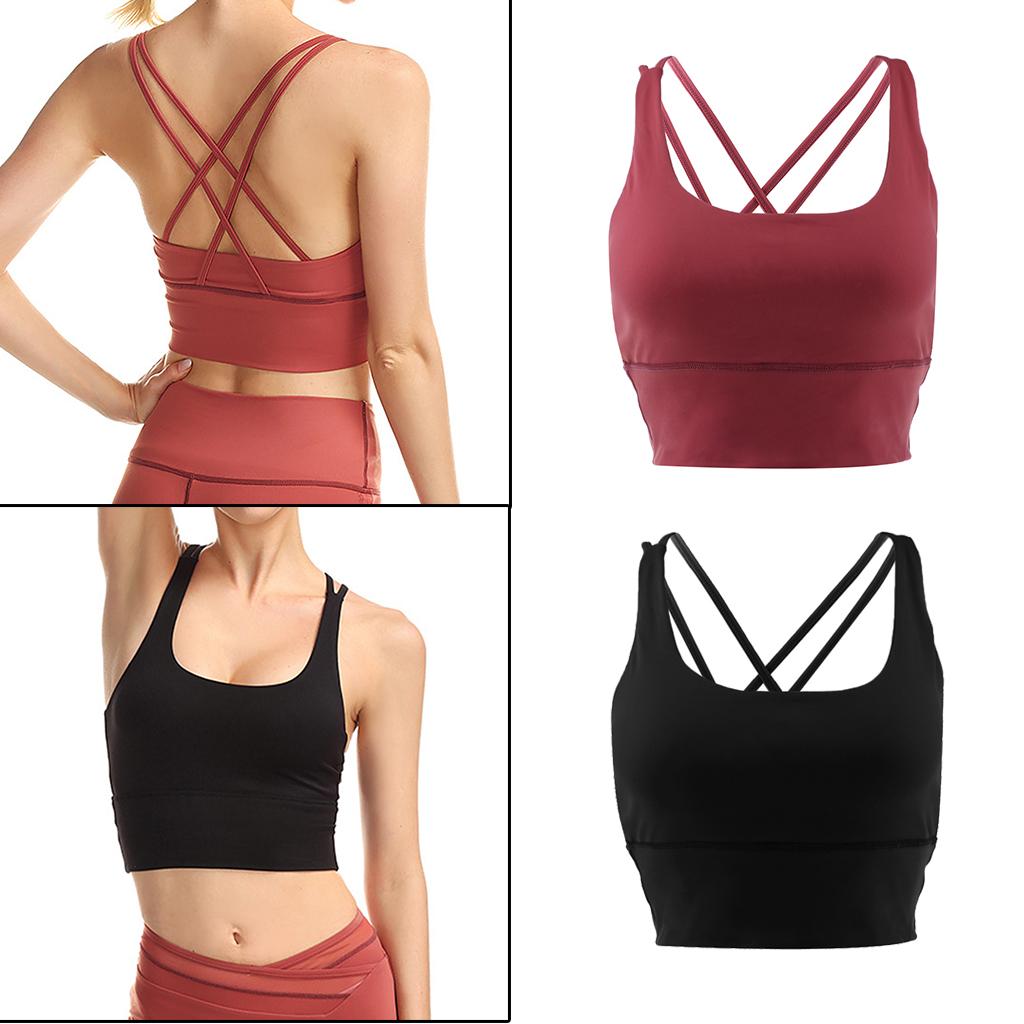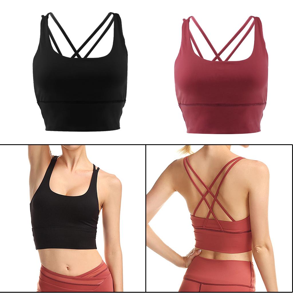 Max Yoga Seamless Strappy Bralette Sports Bra Padded Workout Tank Top Black