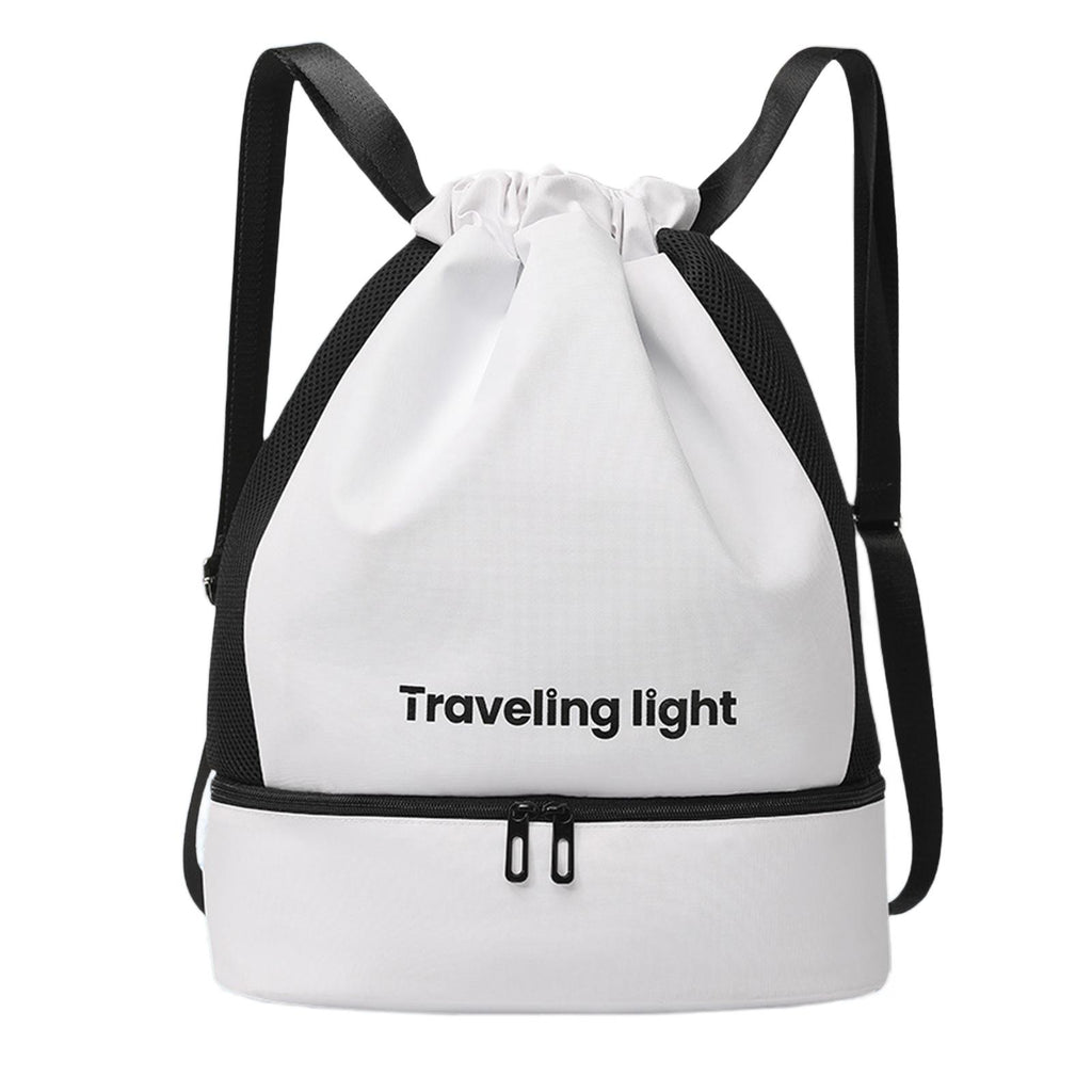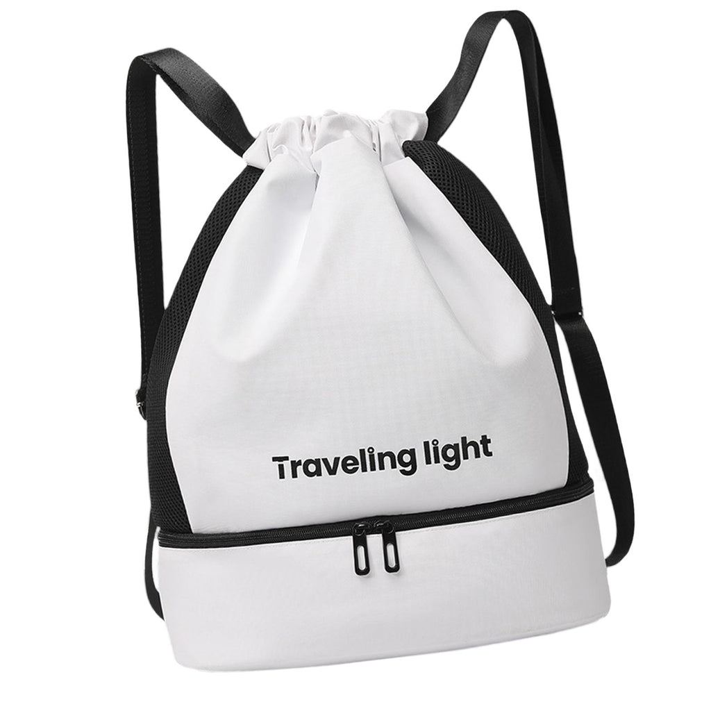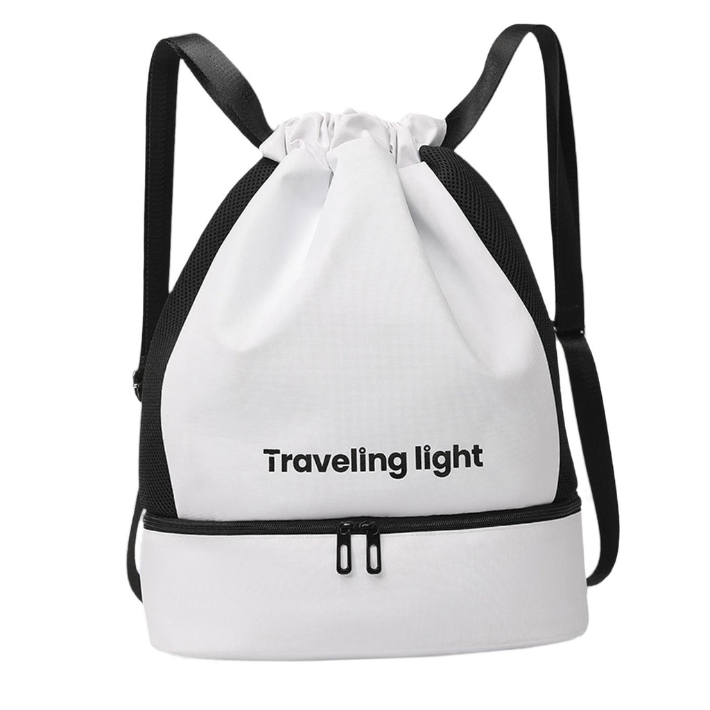 Maxbell Drawstring Backpack Wide Opening Swimming Bag for Swimming Pool Hiking Beach White
