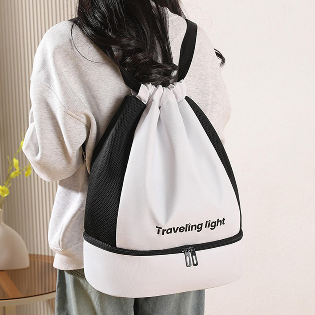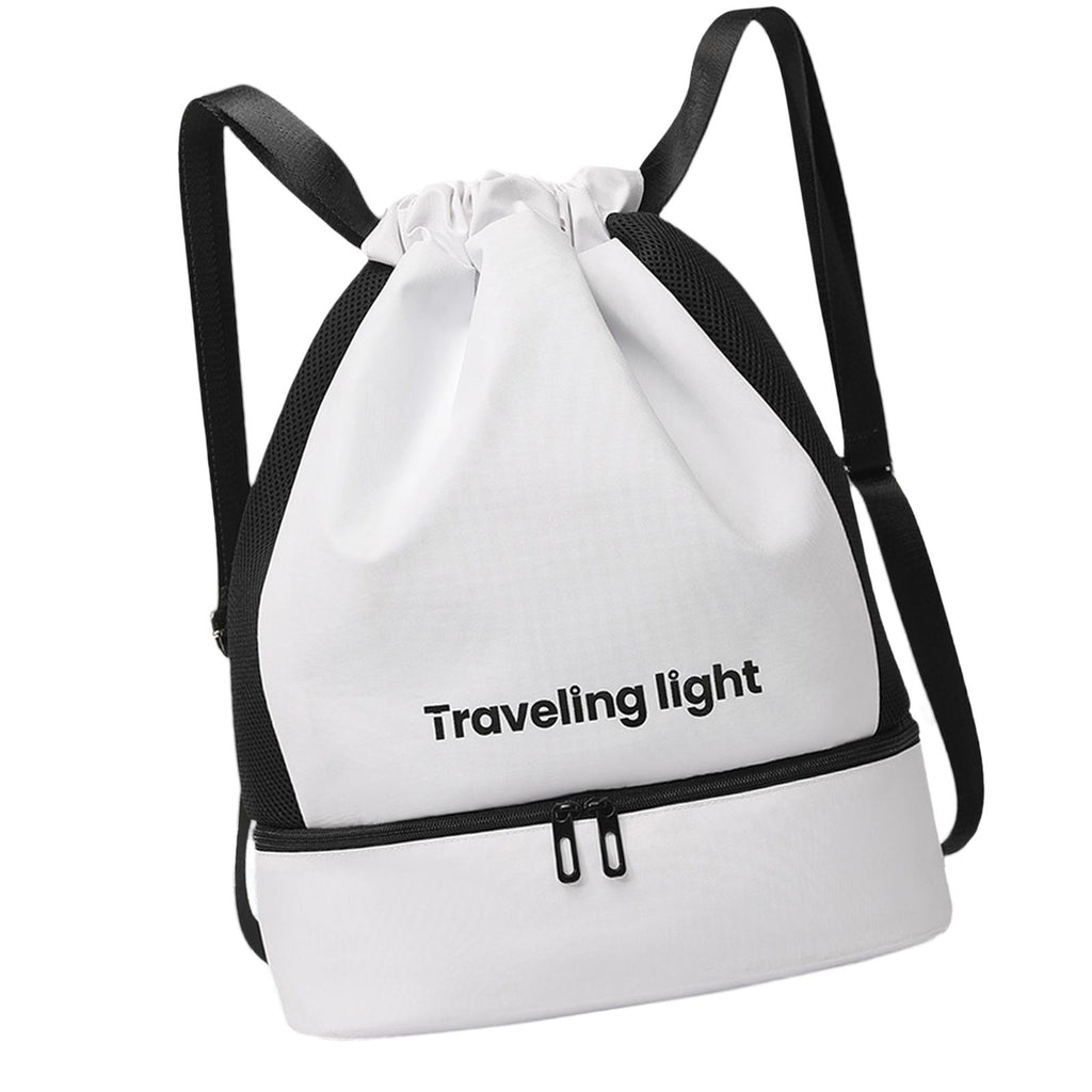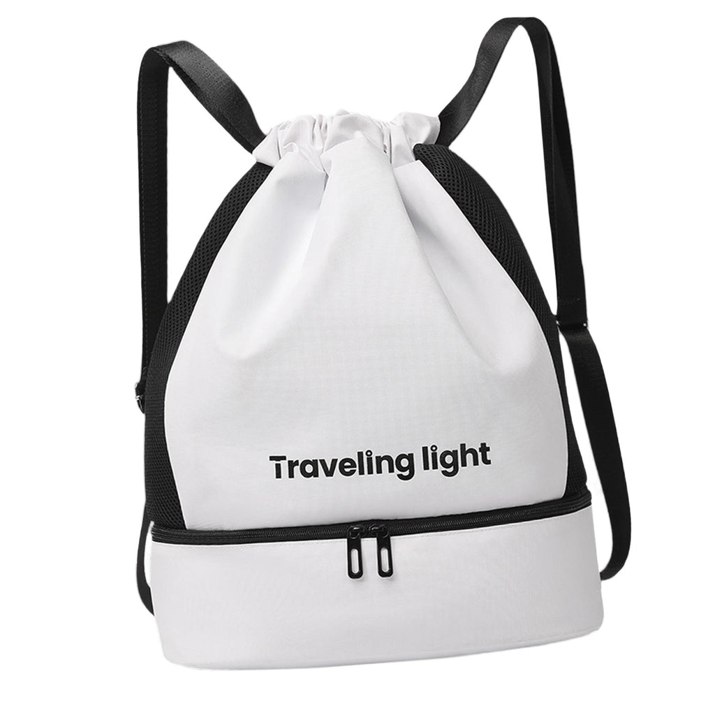 Maxbell Drawstring Backpack Wide Opening Swimming Bag for Swimming Pool Hiking Beach White