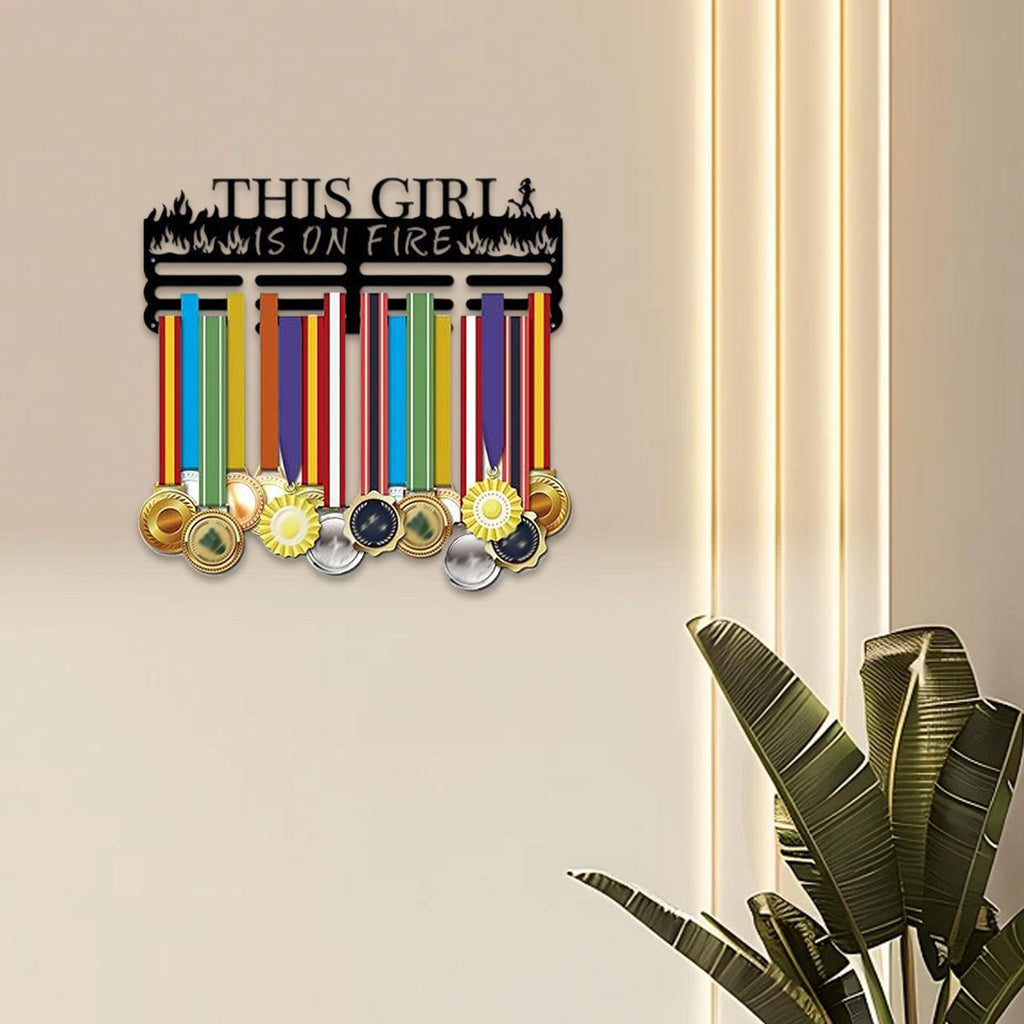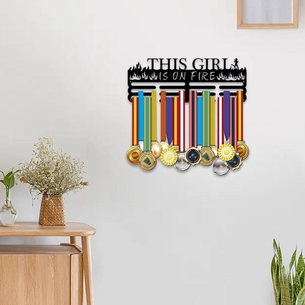 - 【Running Themed Design】: The Medal Hanger features a bold "THIS GIRL IS " motif, great for organizing and proudly showcasing race medals in a stylish, space saving way
