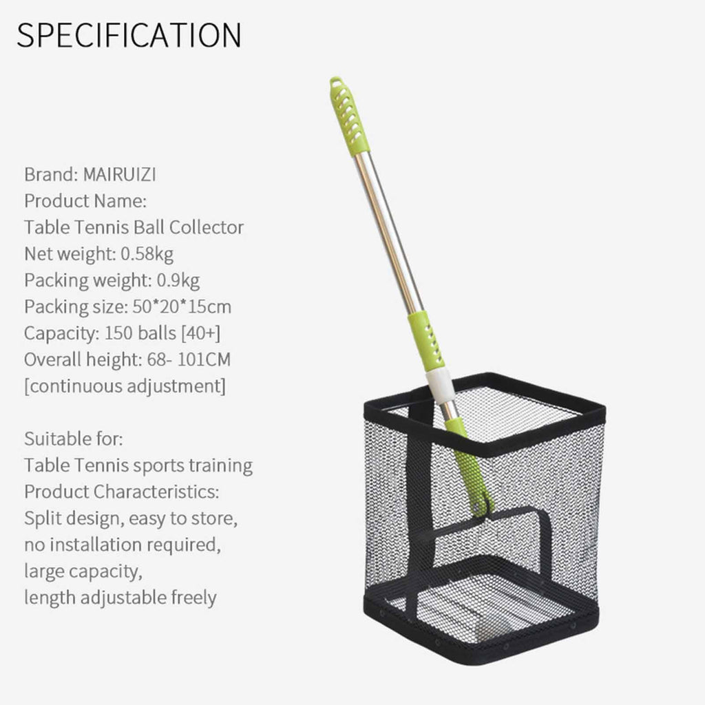 Ping Pong Ball Retriever Telescopic Holds 150 Balls Table Tennis Ball Picker