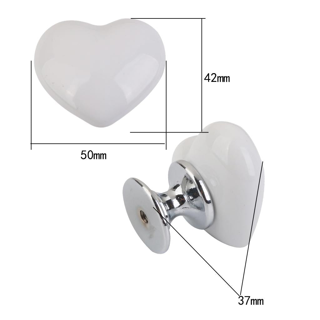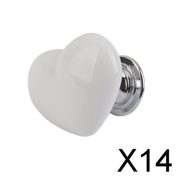 Maxbell 14xHeart Shaped Ceramic Door Drawer Cabinet Handle Pull Knob Hardware White_L