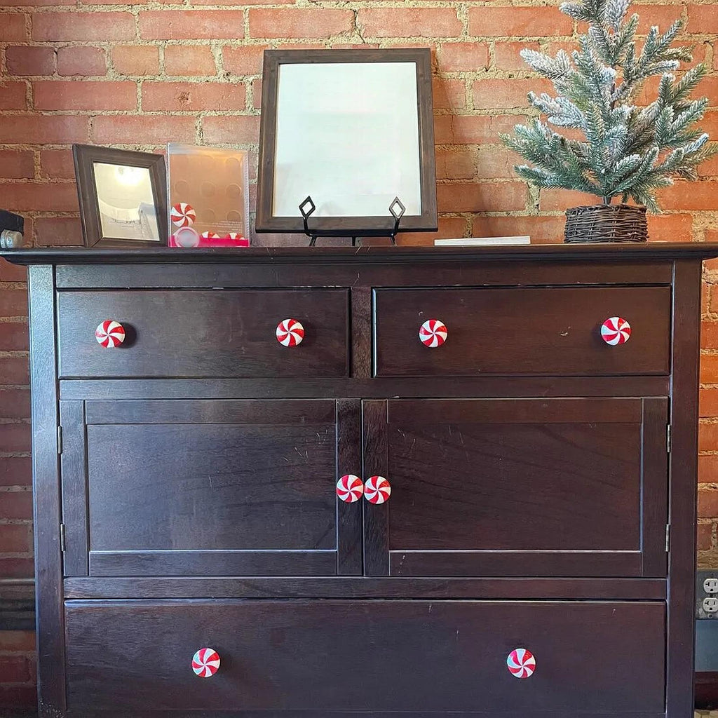 - 【Instant Holiday Cheer】: These Christmas Peppermint Knob Covers feature classic Christmas designs, adding a joyful and festive touch to any cabinet, drawer, or piece of furniture