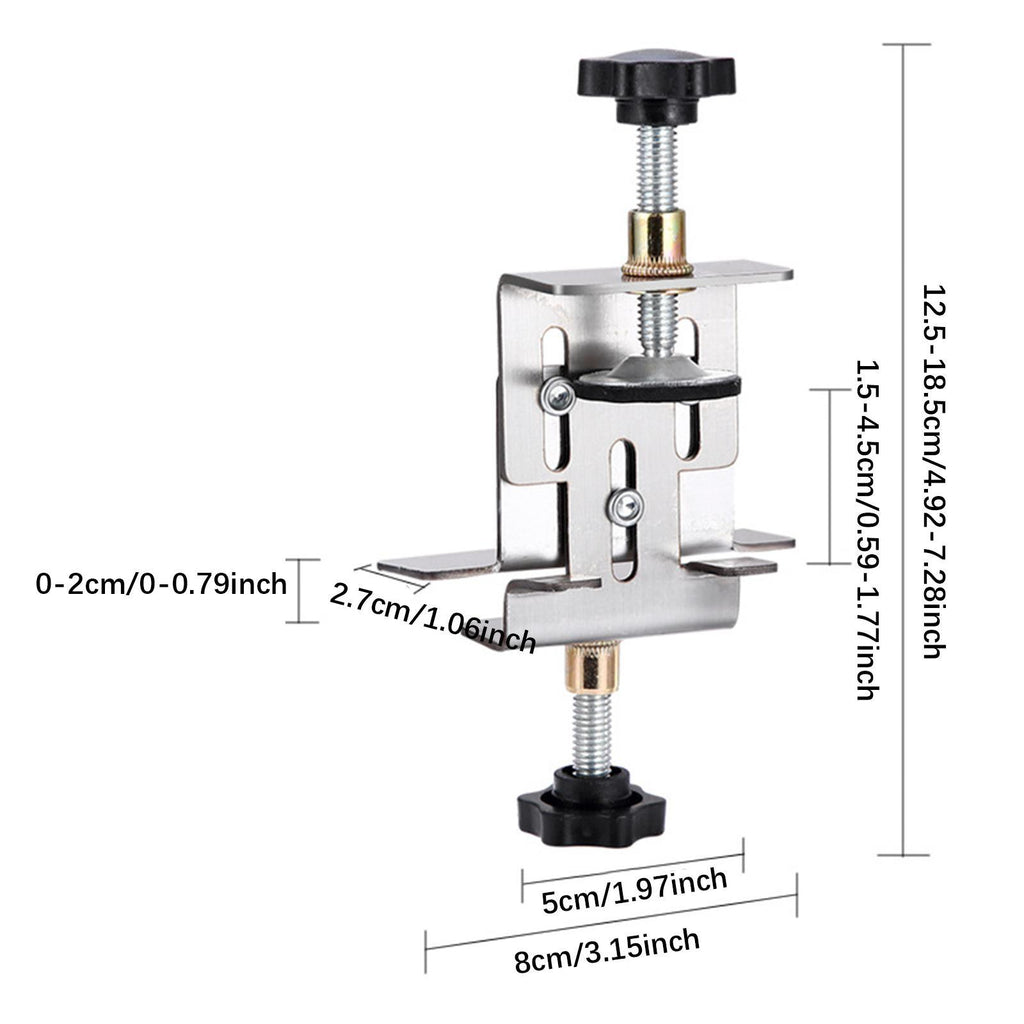 【Adjustable】Cabinet Door Mount Locator has cabinet door height adjustment 0-2cm/0- 0.7inch, adjustable clamping range 1.5cm to 4.5cm(0.6inch to 1.7inch)