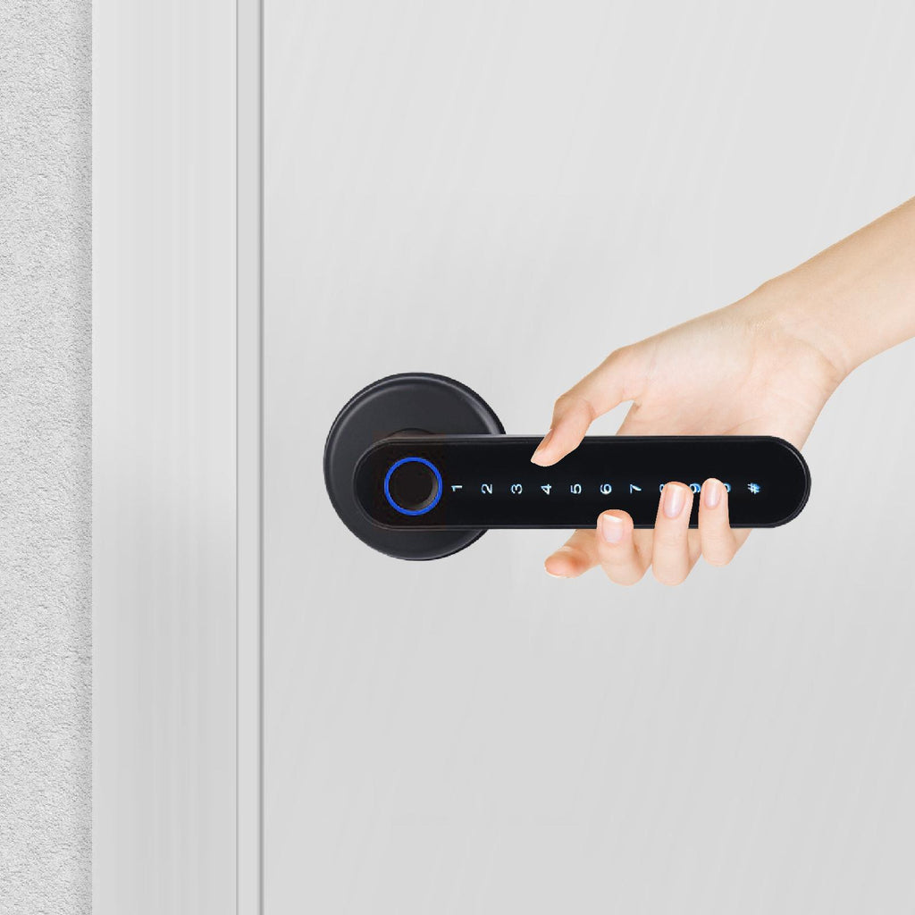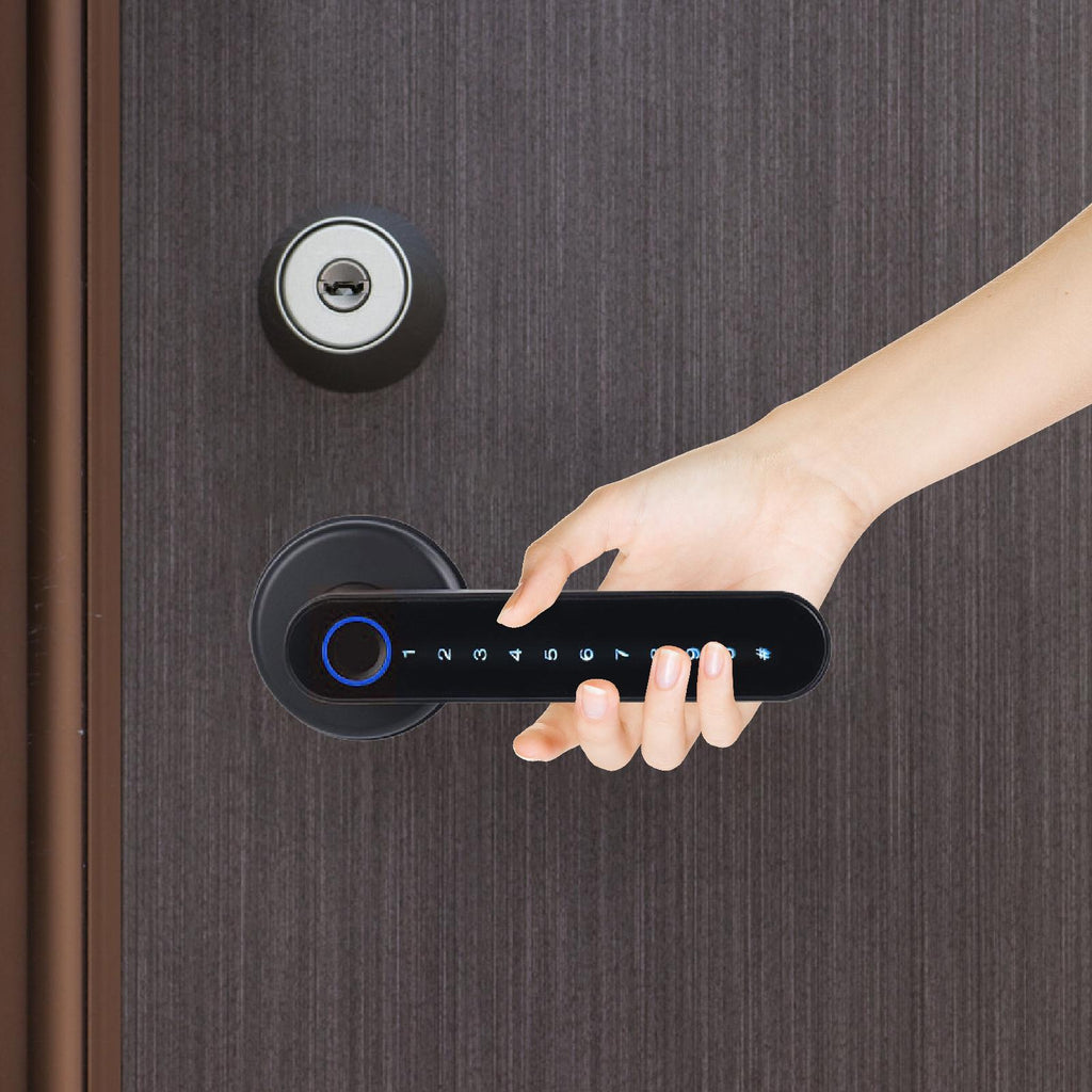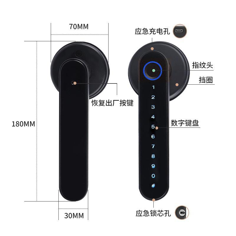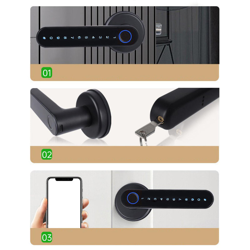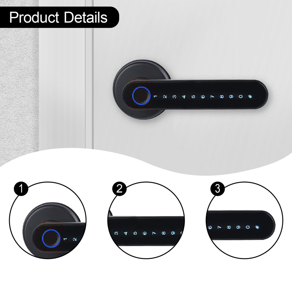 - 【Material】: The Fingerprint Door Lock is made of pp, door handle supports up to 100 fingerprint and 100 password entries for high capacity usage