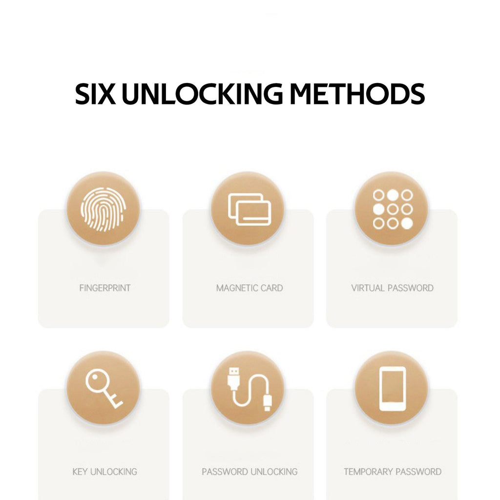 - 【Multiple Unlock Methods】: The Lock offers various unlock methods such as fingerprint, password, IC card, and Physical Keys, and support multiple languages, providing maximum convenience