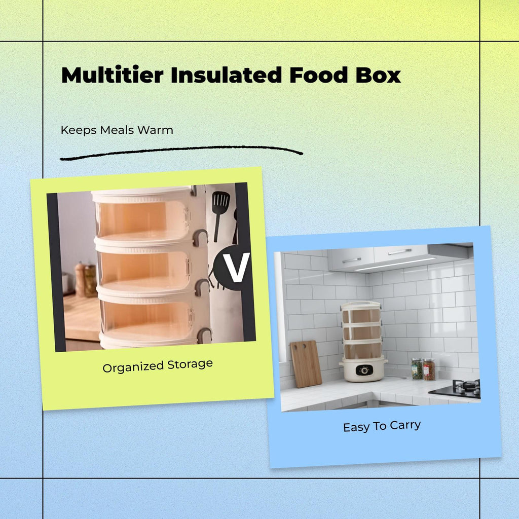 Insulated Food Container, 3-Tier Lunch Box, Stackable, Portable, Thermal, Easy to Clean 5 Layers Knob