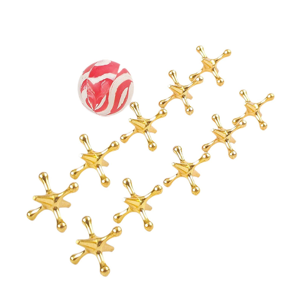 Maxbell 10 Pieces Jacks Games Portable Jacks Toys for Favors 7-14 Years Old Gold