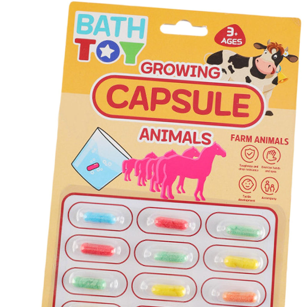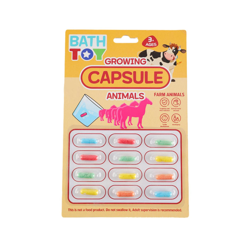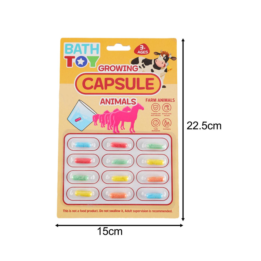 【Product】: soaking water expanding animal capsule growing capsule sponge toys kids bath toys. 12 capsules in 1 piece.