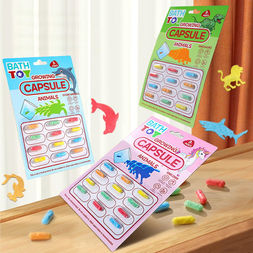 【Product】: soaking water expanding animal capsule growing capsule sponge toys kids bath toys. 12 capsules in 1 piece.