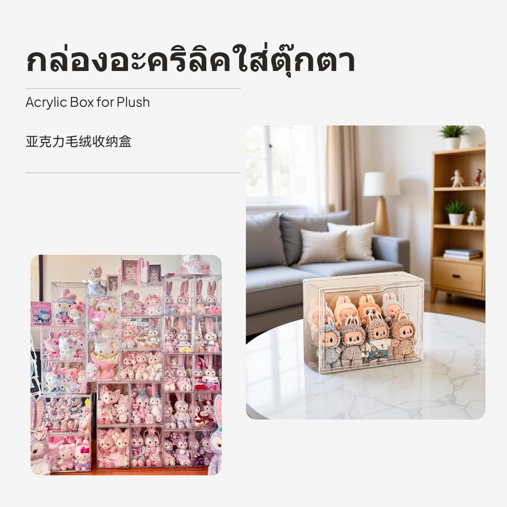 [Clear Acrylic for Showcasing] Featuring high-transparency acrylic material, this display case allows plush dolls, figurines, and collectibles to appear elegantly presented, highlighting every intricacy in your collection.[Stackable & Space-Saving Design] Flexible layering capability lets you freely combine multiple boxes to accommodate different collection sizes, making it fit perfectly on desktops, bookshelves, or living rooms.[magnetized Door for Easy entry] Convenient magnetized door design provides effortless entry to your items while keeping particles away, enhancing protection and reducing cleaning occurrence.[Multiple Sizes, adaptable Storage] Available in several sizes—large and small—to meet various needs, suitable for organizing plush toys, accessories, and mini figurines; customize your own display wall.[Safe Material & Simple Assembly] Made with odorodorless, skinnon-irritating acrylic, the organizer is easy to assemble or detach without tools; rounded edges provide secure handling for all ages.