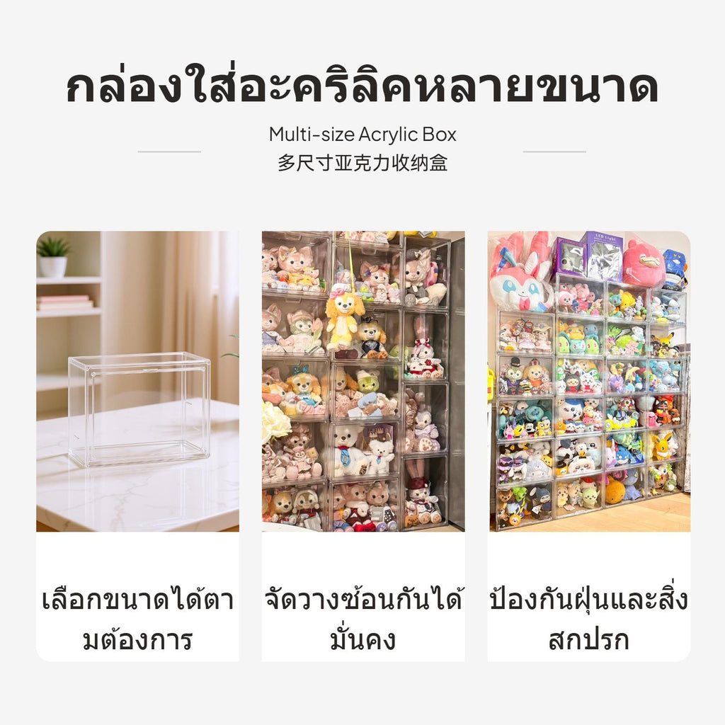 [Clear Acrylic for Showcasing] Featuring high-transparency acrylic material, this display case allows plush dolls, figurines, and collectibles to appear elegantly presented, highlighting every intricacy in your collection.[Stackable & Space-Saving Design] Flexible layering capability lets you freely combine multiple boxes to accommodate different collection sizes, making it fit perfectly on desktops, bookshelves, or living rooms.[magnetized Door for Easy entry] Convenient magnetized door design provides effortless entry to your items while keeping particles away, enhancing protection and reducing cleaning occurrence.[Multiple Sizes, adaptable Storage] Available in several sizes—large and small—to meet various needs, suitable for organizing plush toys, accessories, and mini figurines; customize your own display wall.[Safe Material & Simple Assembly] Made with odorodorless, skinnon-irritating acrylic, the organizer is easy to assemble or detach without tools; rounded edges provide secure handling for all ages.